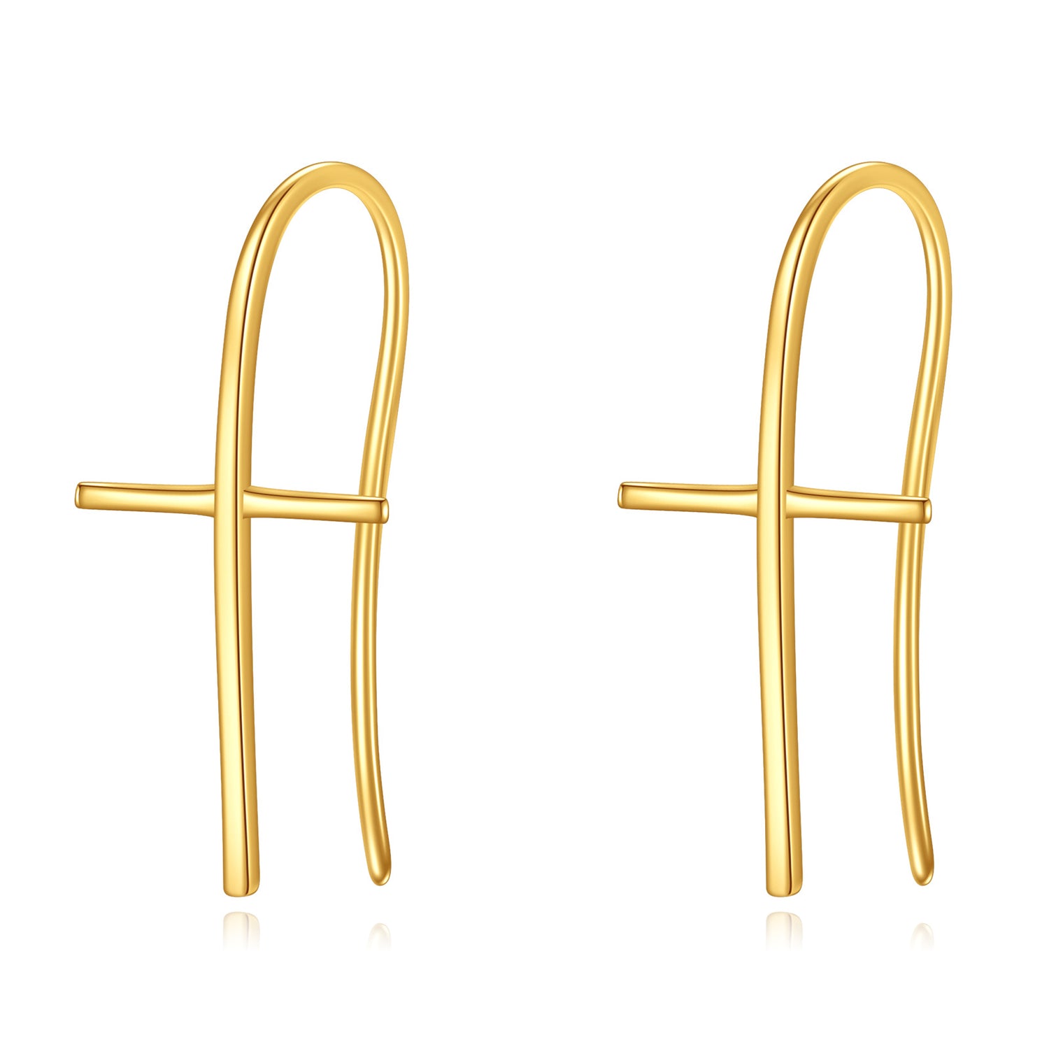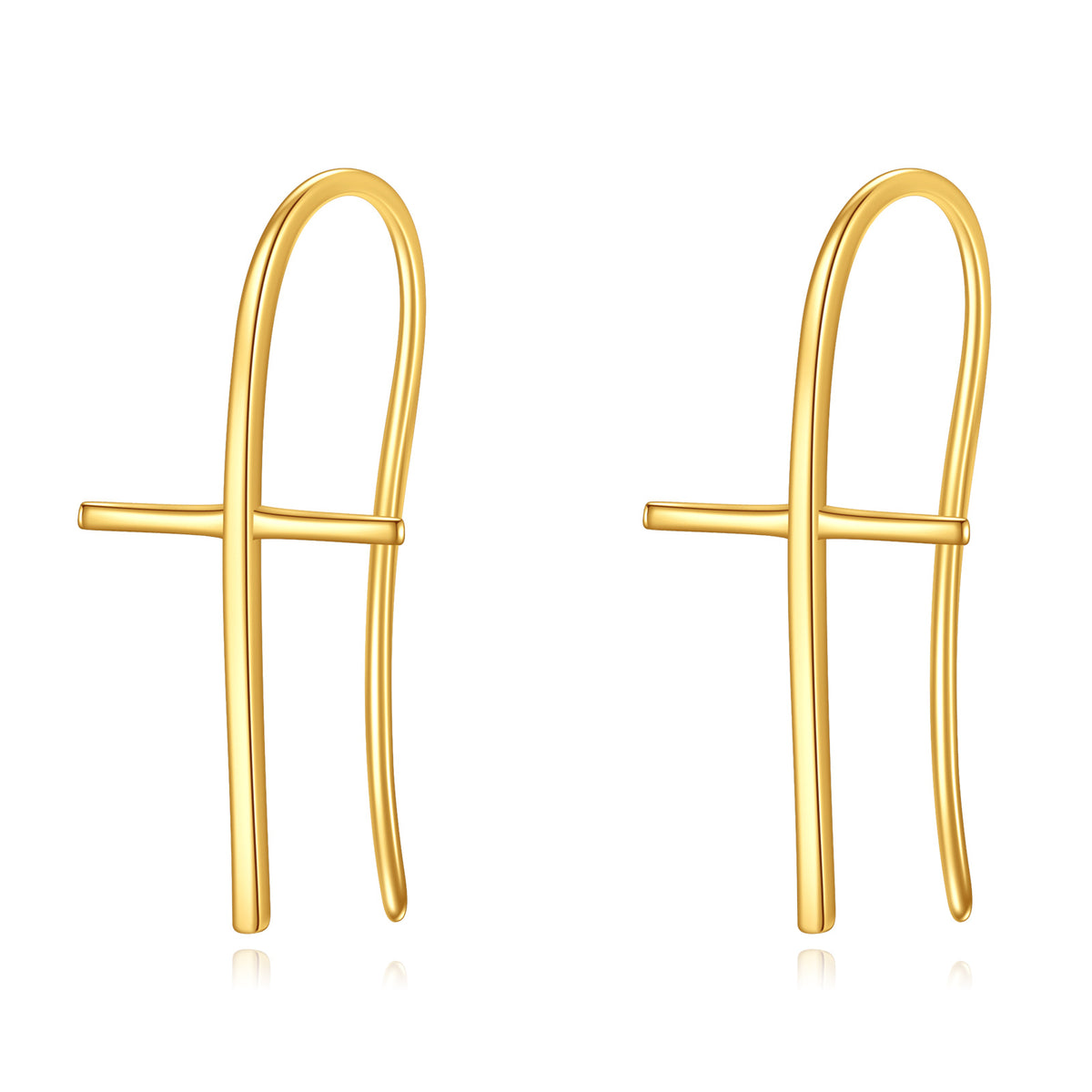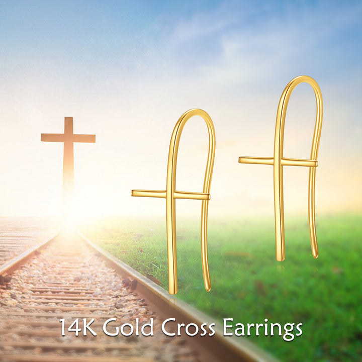 These stone-free Hoop Earrings are crafted from 14K Gold, featuring a Cross motif.