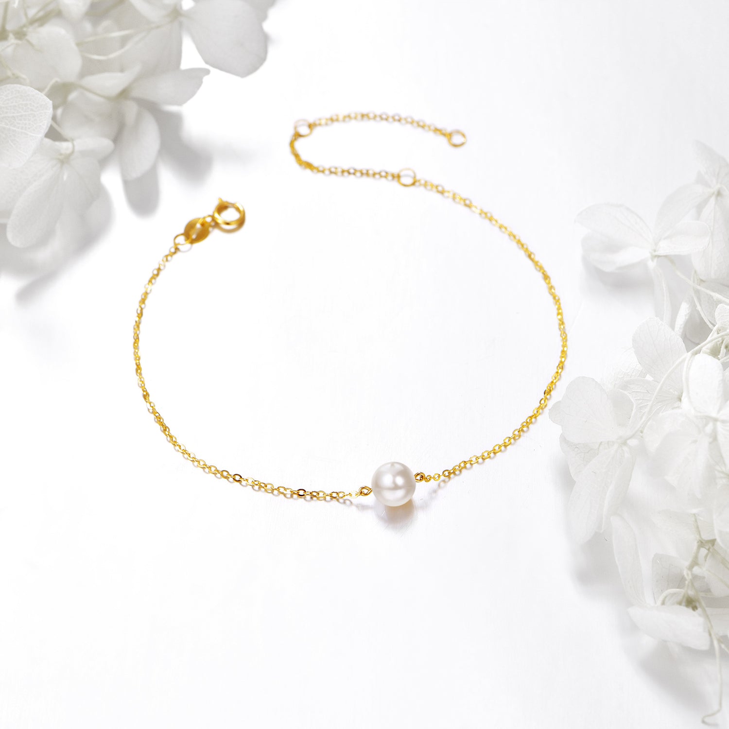 This 14K Gold Pearl Charm Bracelet by YFN is a stunning piece for women, effortlessly blending elegance and style. Made with high-quality 14K gold, this charm bracelet is beautifully adorned with iridescent Pearls. This versatile statement piece radiates a timeless charm, perfect for complementing any outfit and can be personalized with various charms.