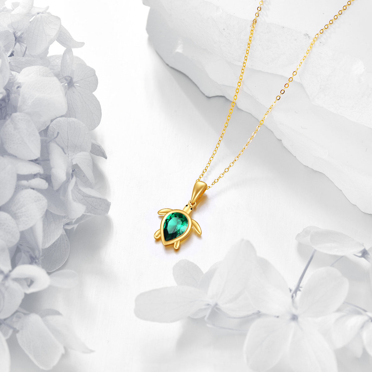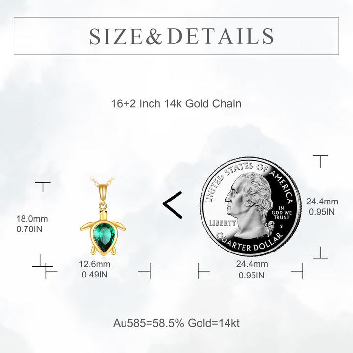 14K Gold Pear Cubic Zirconia Sea Turtle Pendant Necklace