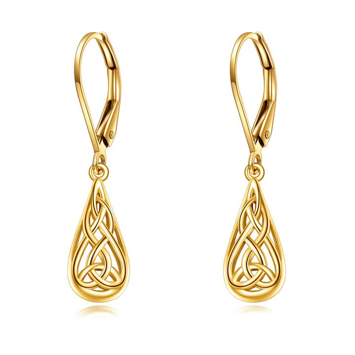 10K Gold Celtic Knot & Drop Shape Drop Earrings