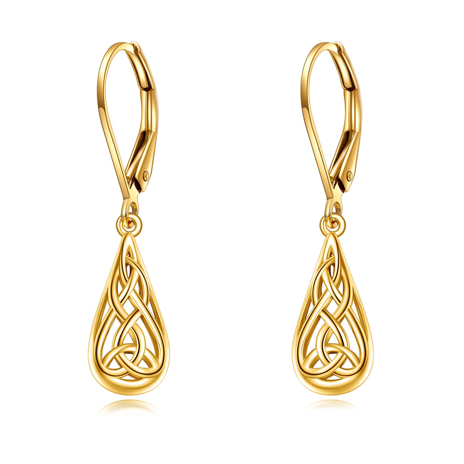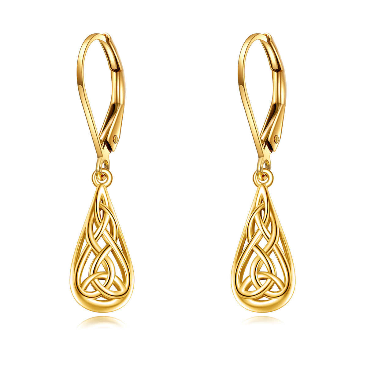 Crafted from high-quality 10K Gold, these stone-free, drop-shaped Earrings feature an intricate Celtic Knot design.