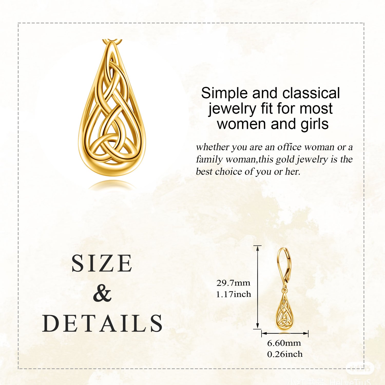 These 10K Gold Celtic Knot & Drop Shape Drop Earrings by YFN are a timeless accessory for the modern woman. Crafted from high-quality 10K Gold, the stone-free, drop-shaped earrings feature an intricate Celtic Knot design, symbolizing eternal love and connection. Lightweight and durable, they offer a subtle yet sophisticated touch that effortlessly complements any outfit, making them a meaningful and essential piece for all occasions.