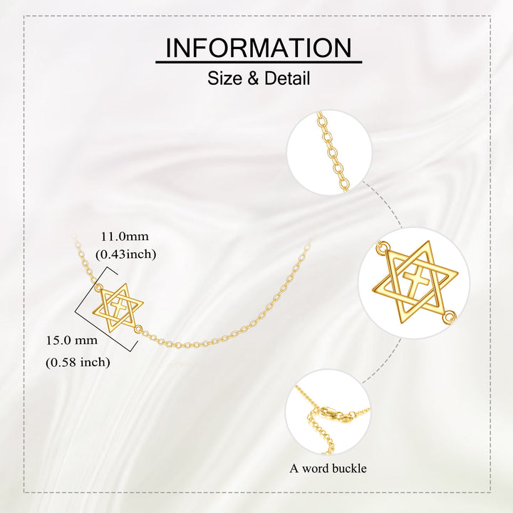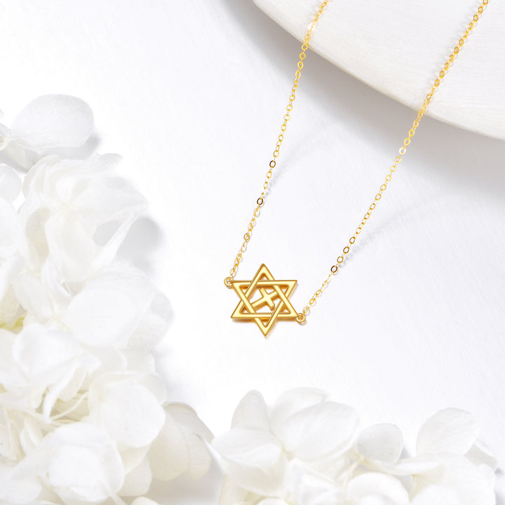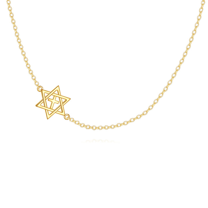 This 14K Gold Cross & Star of David Choker Necklace by YFN blends two meaningful symbols into a beautifully minimalist design. Crafted for women who appreciate subtle spirituality, the sleek gold choker features a delicate cross and Star of David, representing unity and personal faith. The stone-free aesthetic emphasizes clean lines and radiant gold, making it suitable for layering or standing alone as a refined statement. Its modern simplicity and deep symbolism create a timeless piece for everyday elegance.