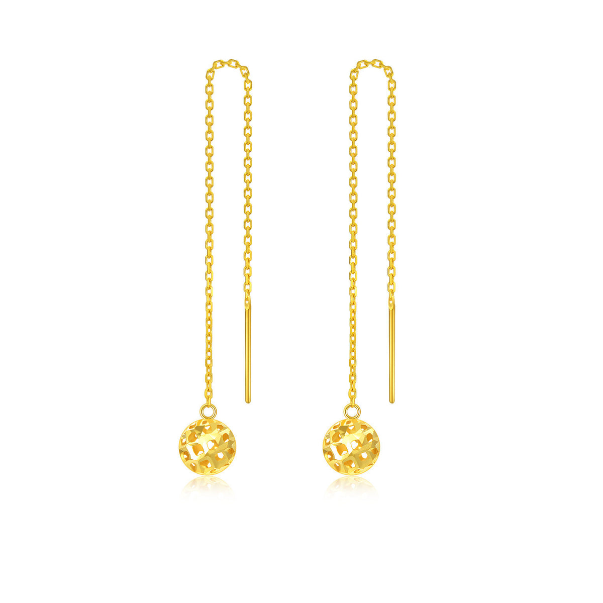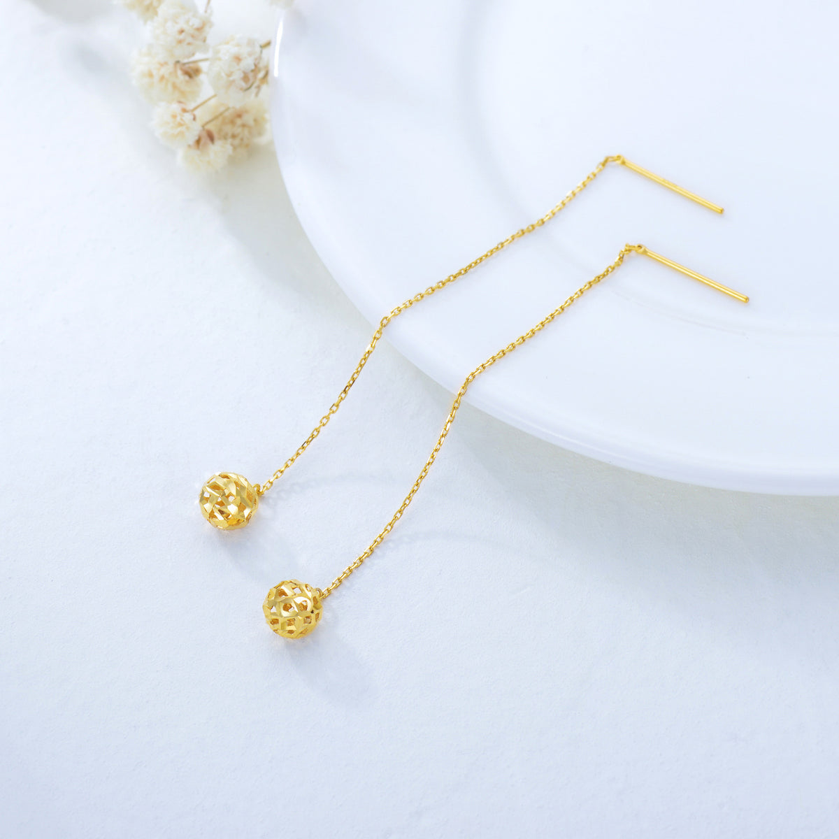 These 18K Gold Spherical Drop Earrings by YFN are stunning, stone-free earrings designed exclusively for women. Crafted from premium 18K gold, their spherical design is the epitome of class and elegance. These timeless pieces offer a pure, no-stone aesthetic that fits seamlessly into any ensemble, allowing the pure gold to shine for a minimalist yet impactful look.