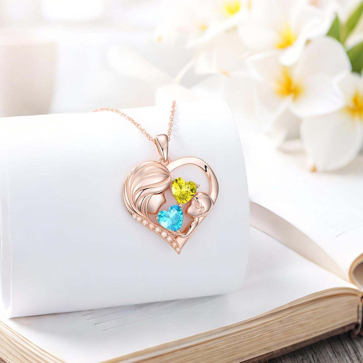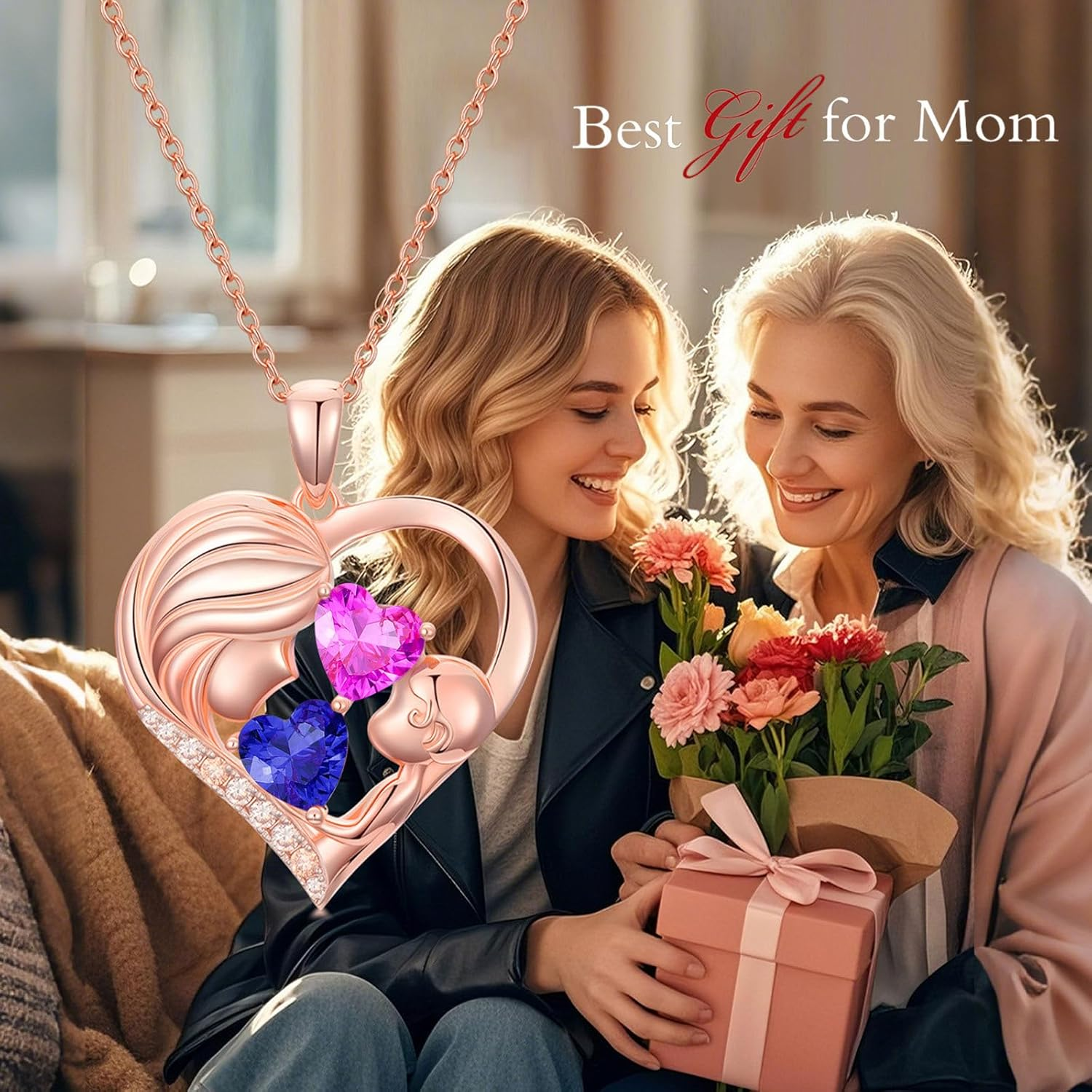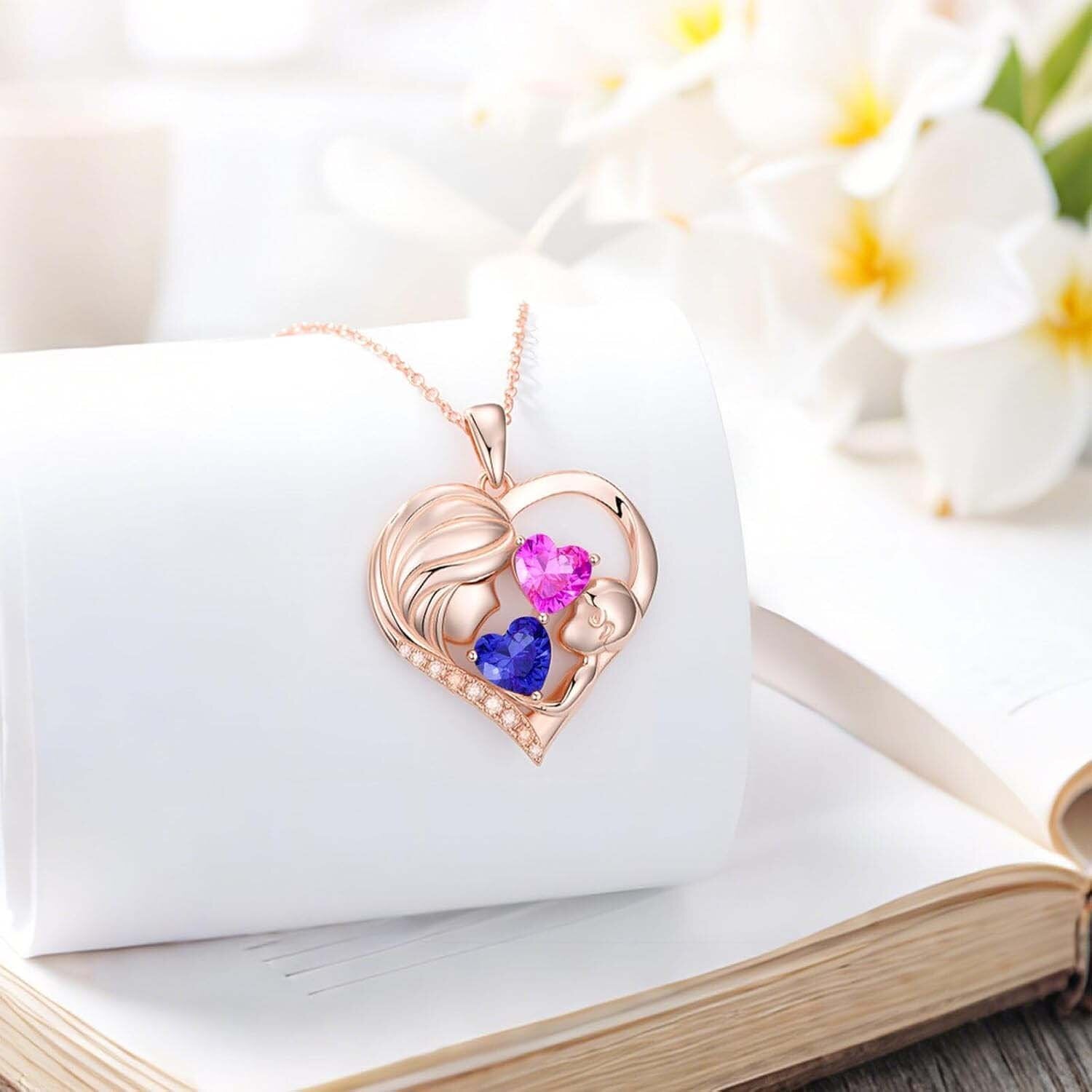 14K Rose Gold Personalized Birthstone Grandmother Mother & Heart Pendant Necklace