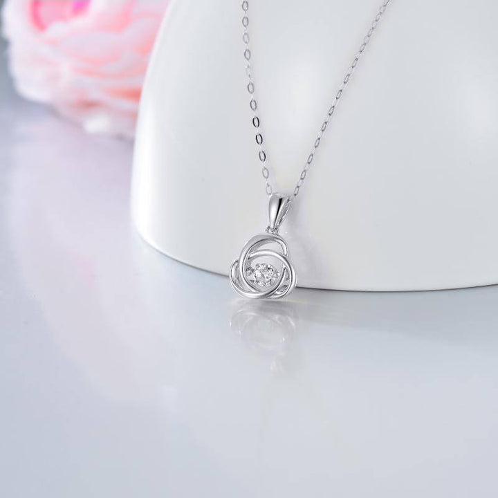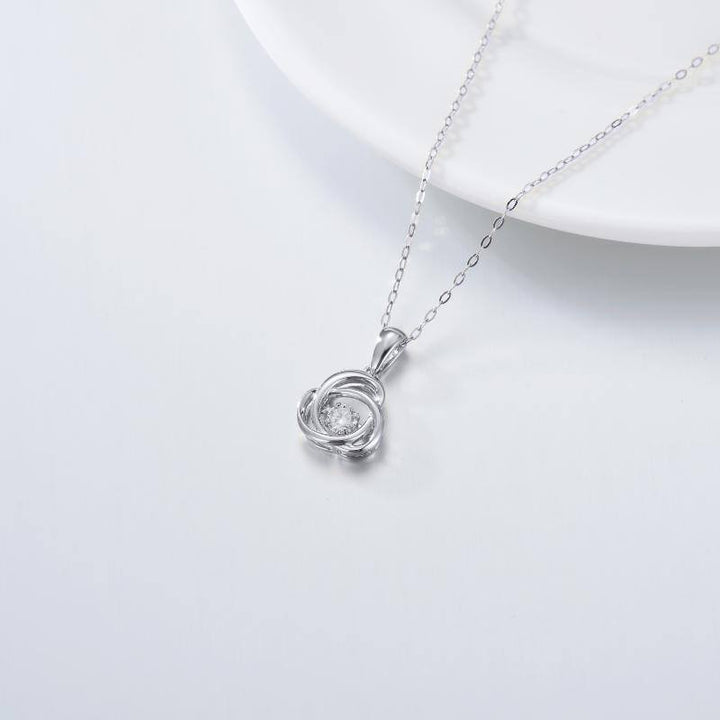 14K White Gold Circular Shaped Moissanite Celtic Knot Pendant Necklace