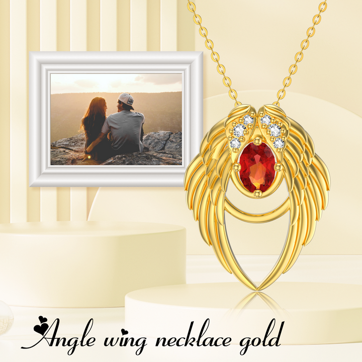 14K Gold Cubic Zirconia Angel Wing Pendant Necklace