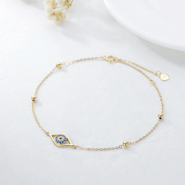 14K Gold Cubic Zirconia Bead & Evil Eye Charm Bracelet
