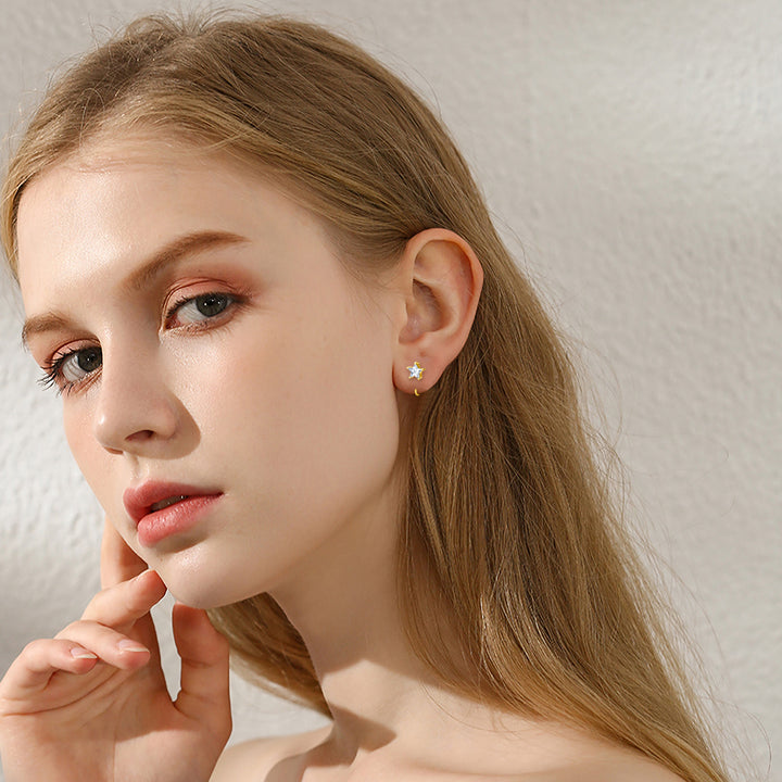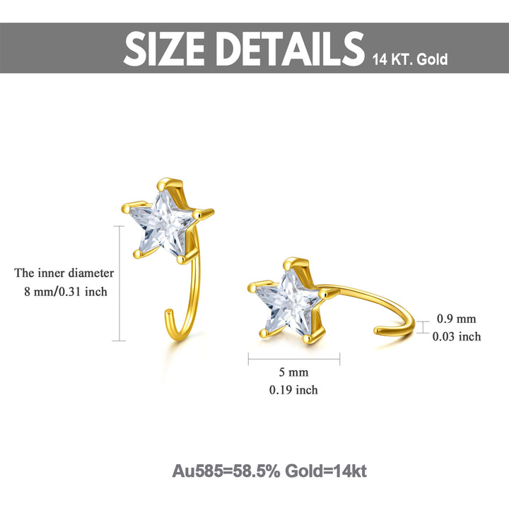 14K Gold Five-Pointed Star Stud Half Hoop Earrings With 5A Grade Zircon