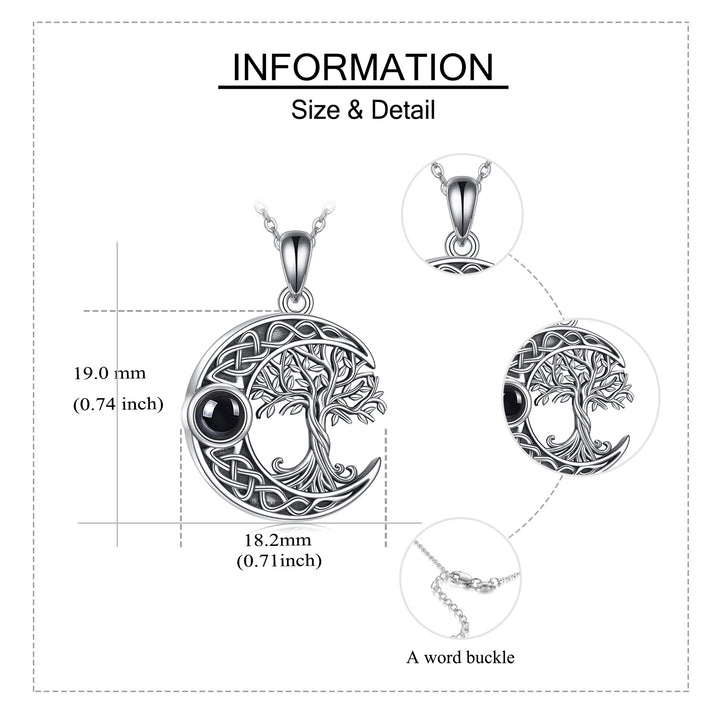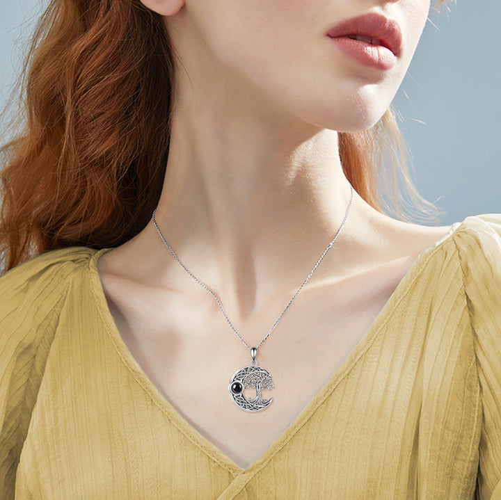 Sterling Silver Circular Projection Stone Tree Of Life & Celtic Knot & Moon Engraved Word Urn Necklace For Ashes For Women Best Friends