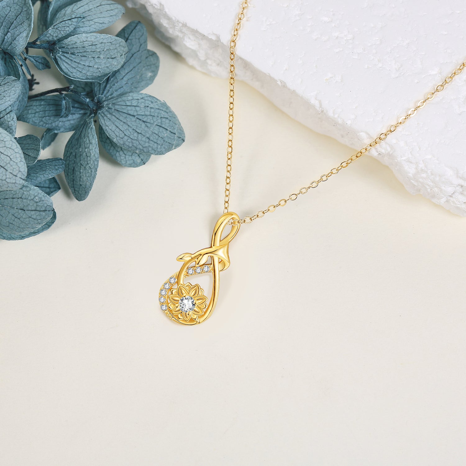 This 14K Yellow Gold Circular Cubic Zirconia Sunflower Pendant Necklace by YFN effortlessly elevates style with its elegance and charm. Crafted from high-quality 14K gold, the circular pendant showcases a beautifully intricate sunflower motif—a symbol of joy and positivity. Encased with dazzling Cubic Zirconia stones, this timeless piece captures and reflects light, making it an essential, sophisticated addition to every woman's collection for any occasion.
