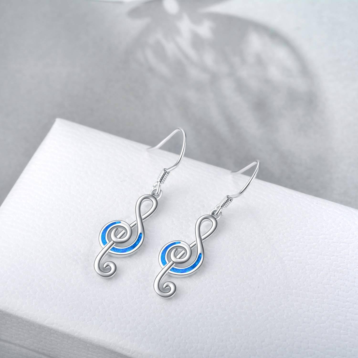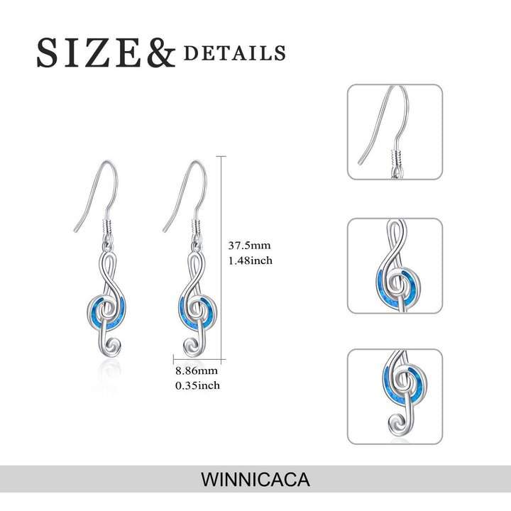 Crafted from genuine Sterling Silver and White Gold Plated, these Drop Earrings feature a radiant Opal set in a Music Symbol motif.