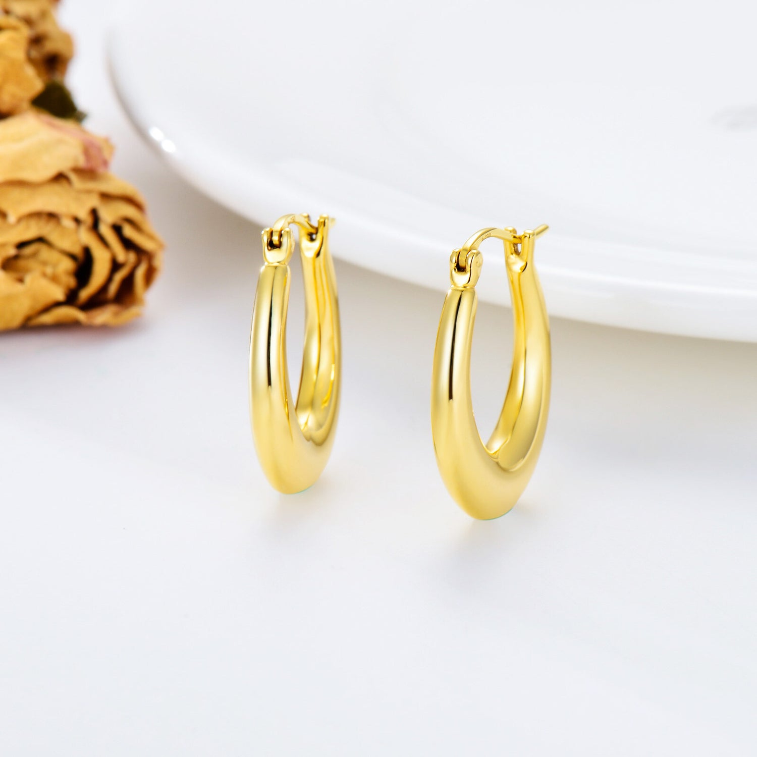 These 18K Gold Oval Shaped Hoop Earrings by YFN are an elegant and timeless accessory designed for the modern woman. Crafted with precision from high-quality 18K gold without stones, their oval shape offers a unique, sophisticated twist on a classic hoop design. Lightweight, hypoallergenic, and perfect for daily wear or special occasions, these earrings are a versatile, minimalist staple that ensures unparalleled quality and enduring style.