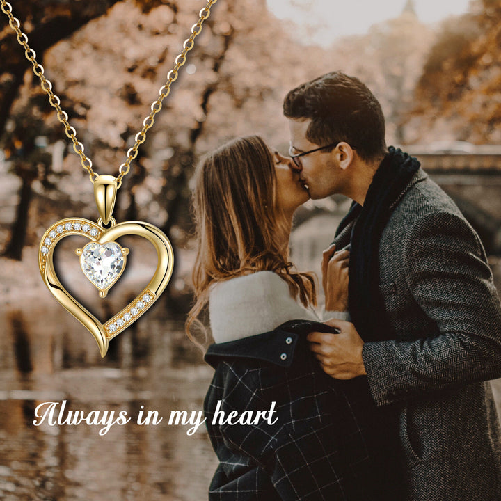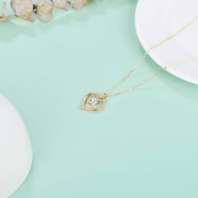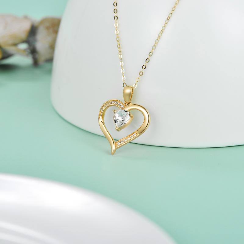 9K Gold Heart Pendant Necklace With 5A Austrian Zircon
