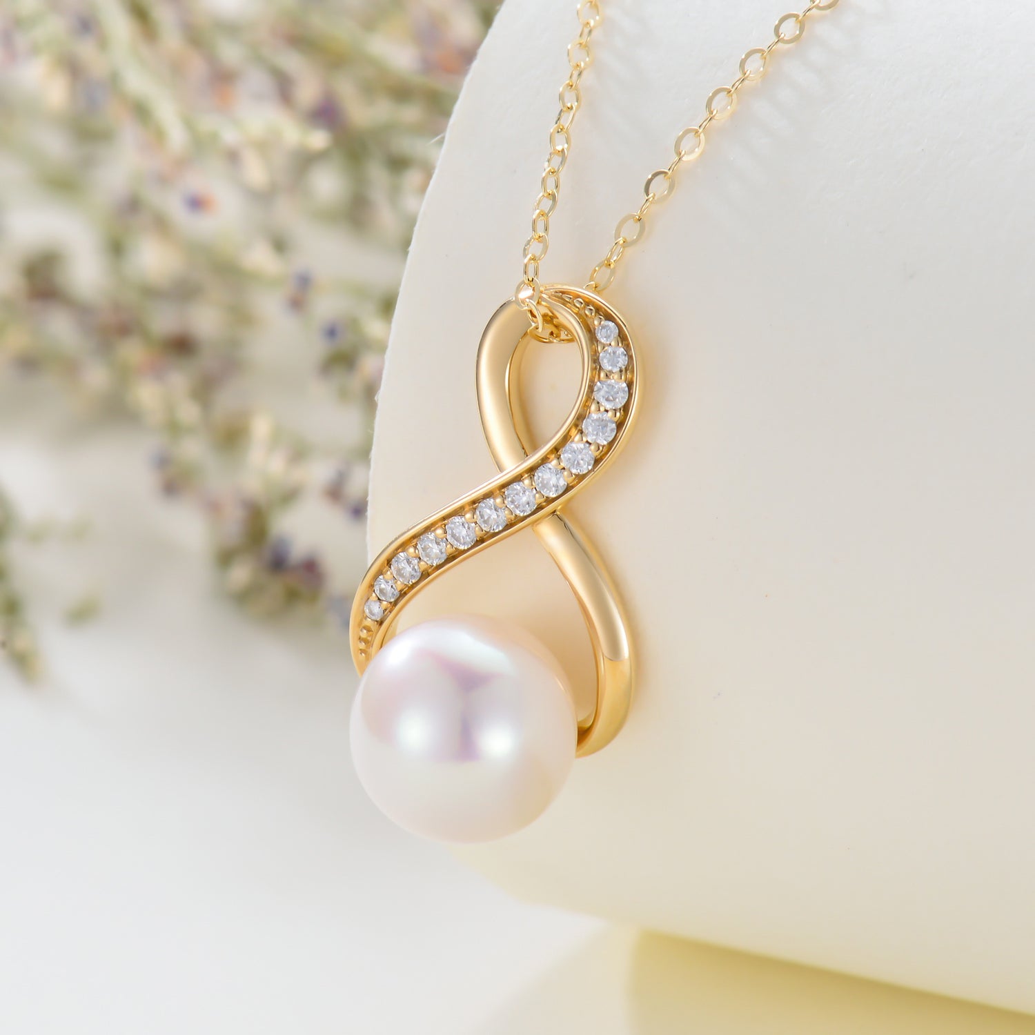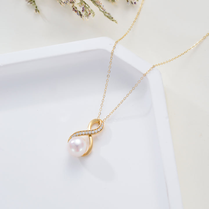 14K Gold Moissanite & Pearl Infinite Symbol Pendant Necklace
