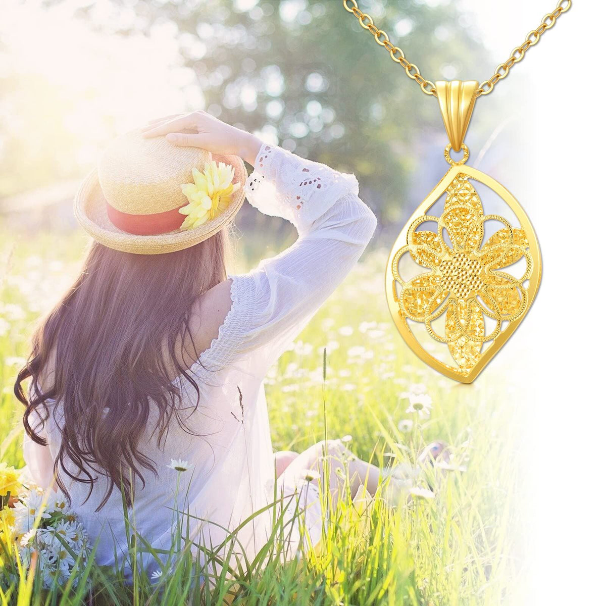 This no-stone Women's Pendant Necklace is Crafted from 18K Gold, Adorned with an Intricate Leaf Motif.