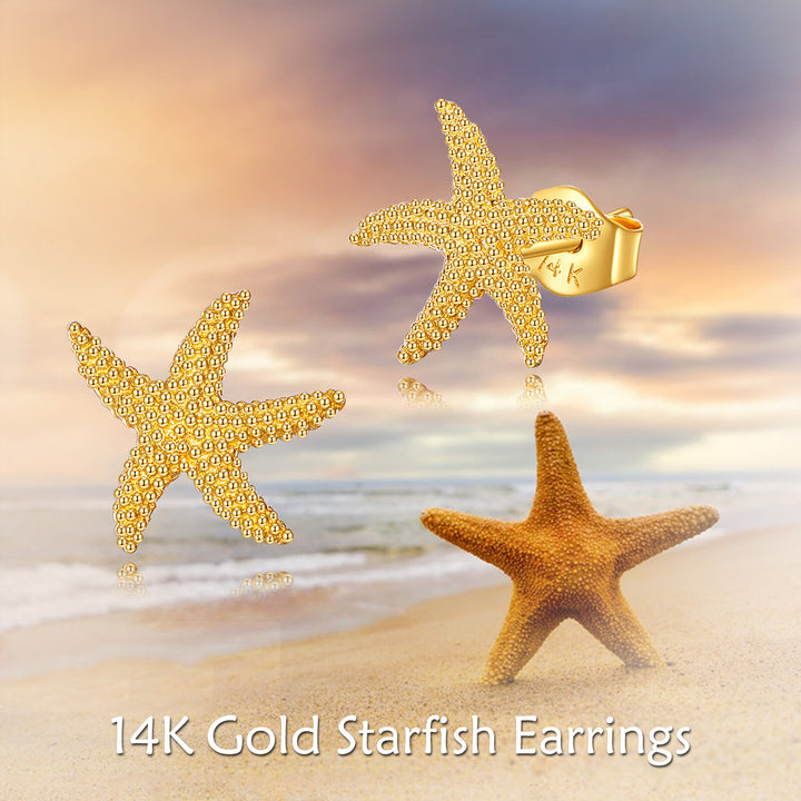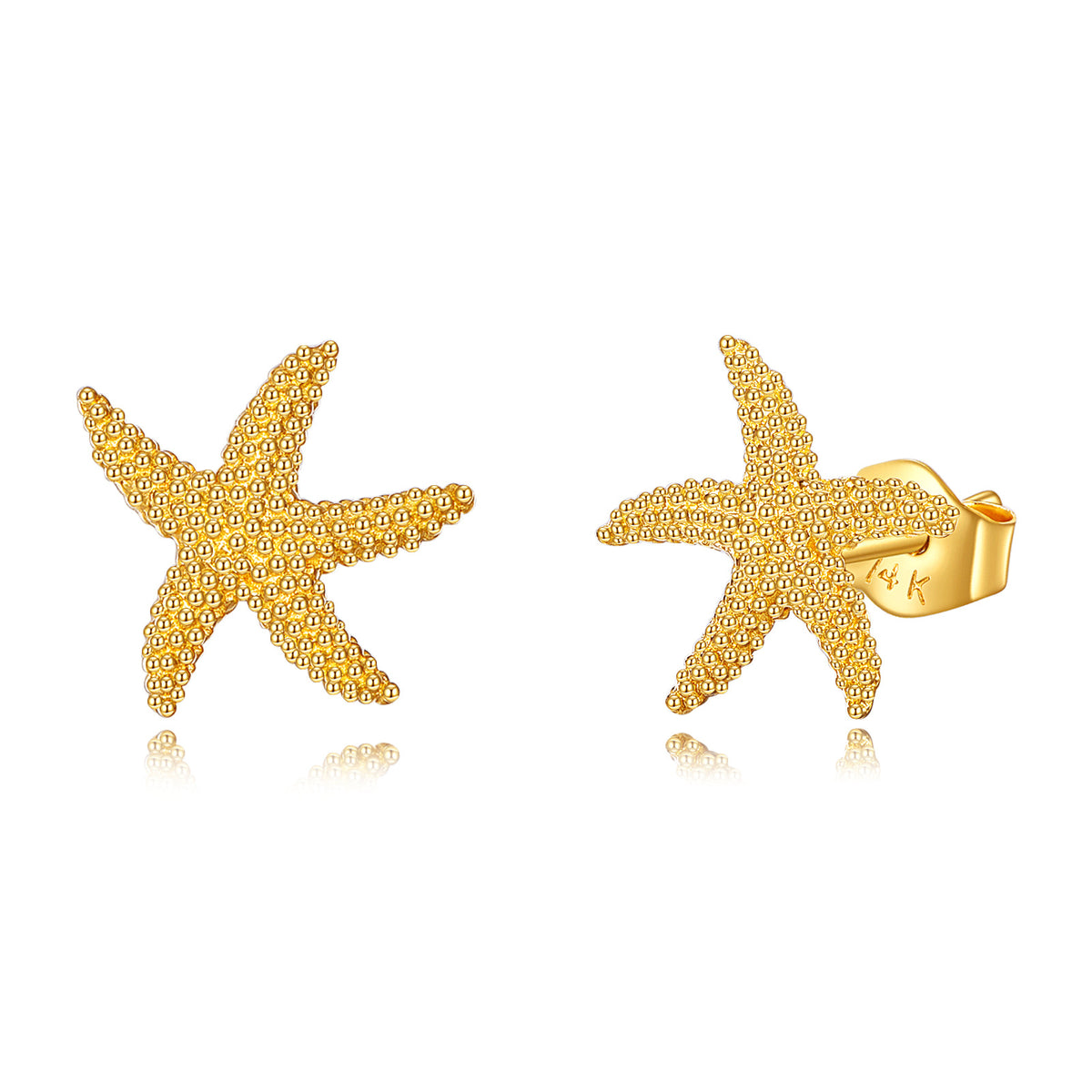 Crafted from genuine 14K Gold, these no-stone Starfish Stud Earrings feature a unique marine-inspired design.
