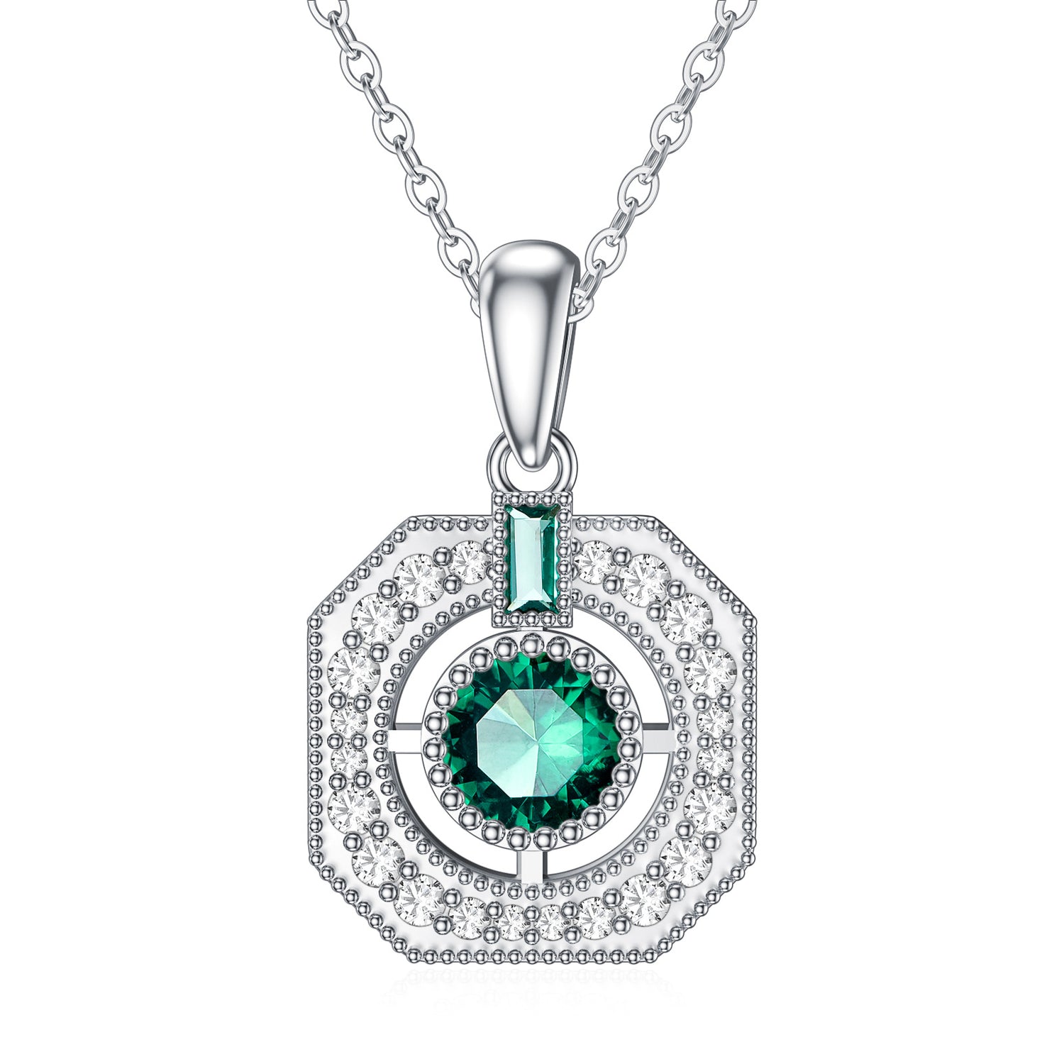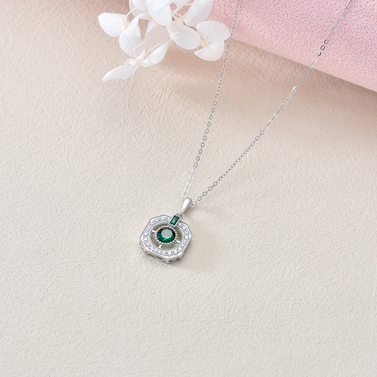 This 9K White Gold Cubic Zirconia Square Pendant Necklace by YFN pairs cool-toned gold with a vivid emerald centerpiece framed in cubic zirconia. The geometric square silhouette feels modern and polished, while the gemstone combination adds depth and contrast. Elegant and striking, this pendant enhances any ensemble with a touch of sophisticated color.