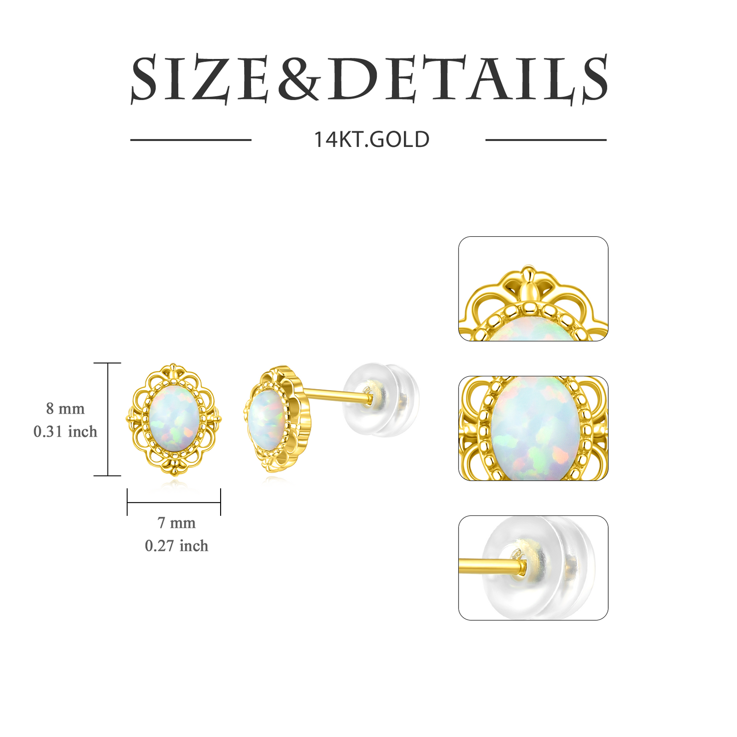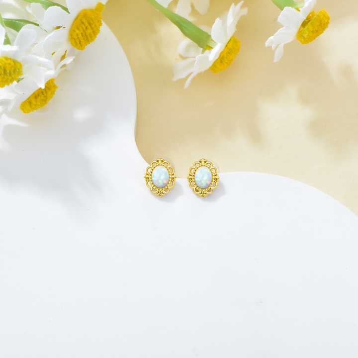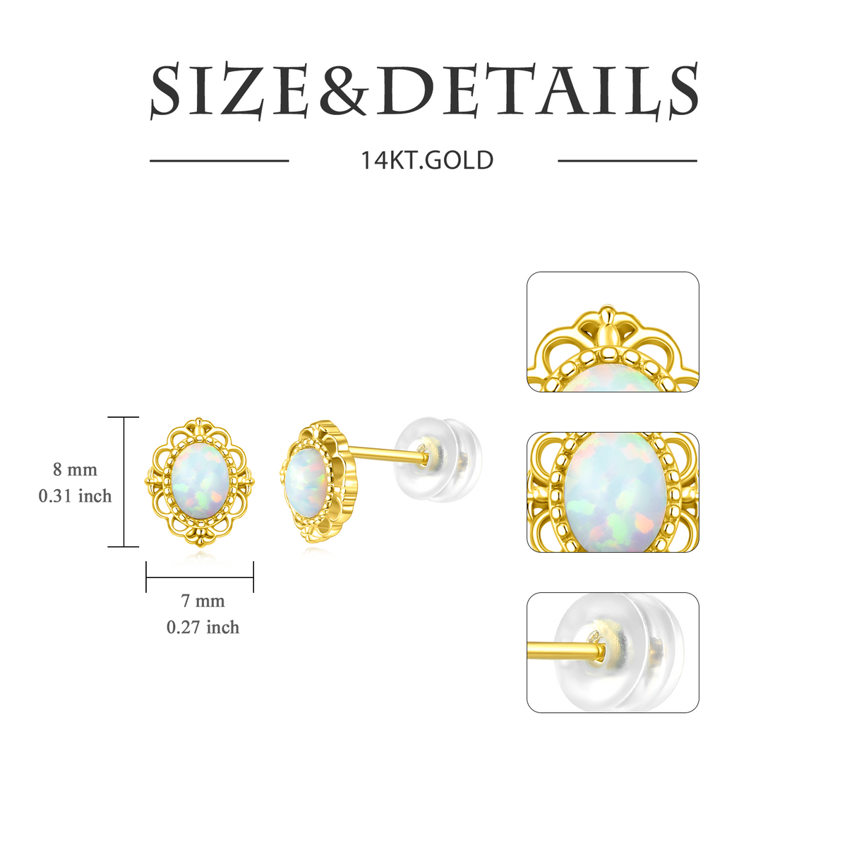 14K Yellow Gold Oval Opal Stud Earrings For Women