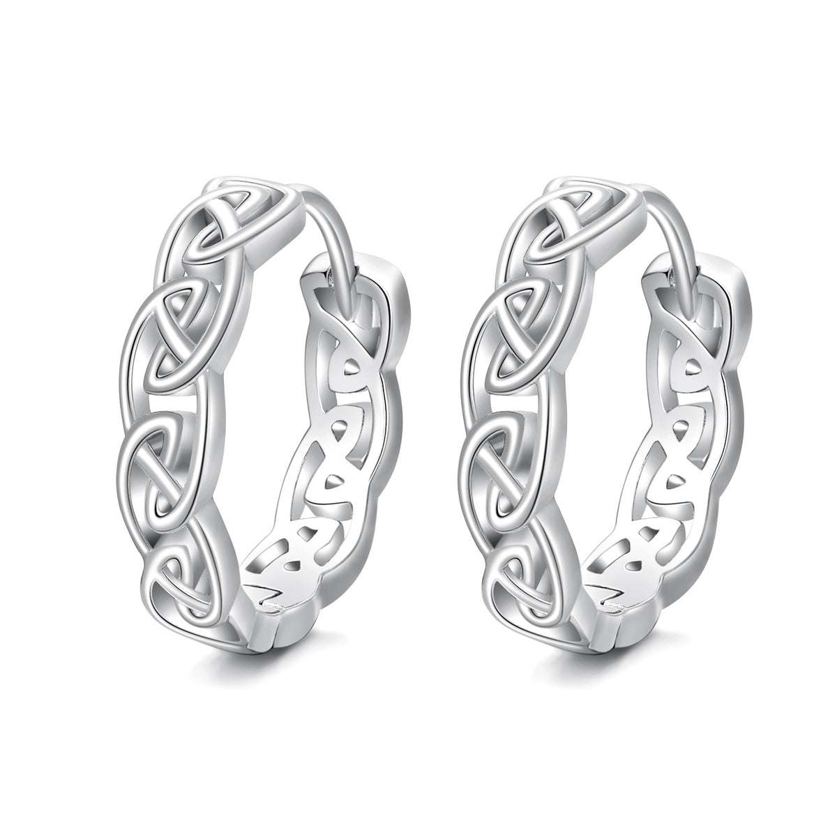 These Sterling Silver Celtic Knot Hoop Earrings by YFN are the perfect elegant accessory, blending traditional symbolism with modern style. Crafted from premium Sterling Silver, these hoops feature intricate Celtic Knot patterns, symbolizing eternal love and interconnectedness. Enhanced with a radiant White Gold Plating, they offer durability and sophistication without the need for gemstones, making them a meaningful and comfortable choice for all-day wear.