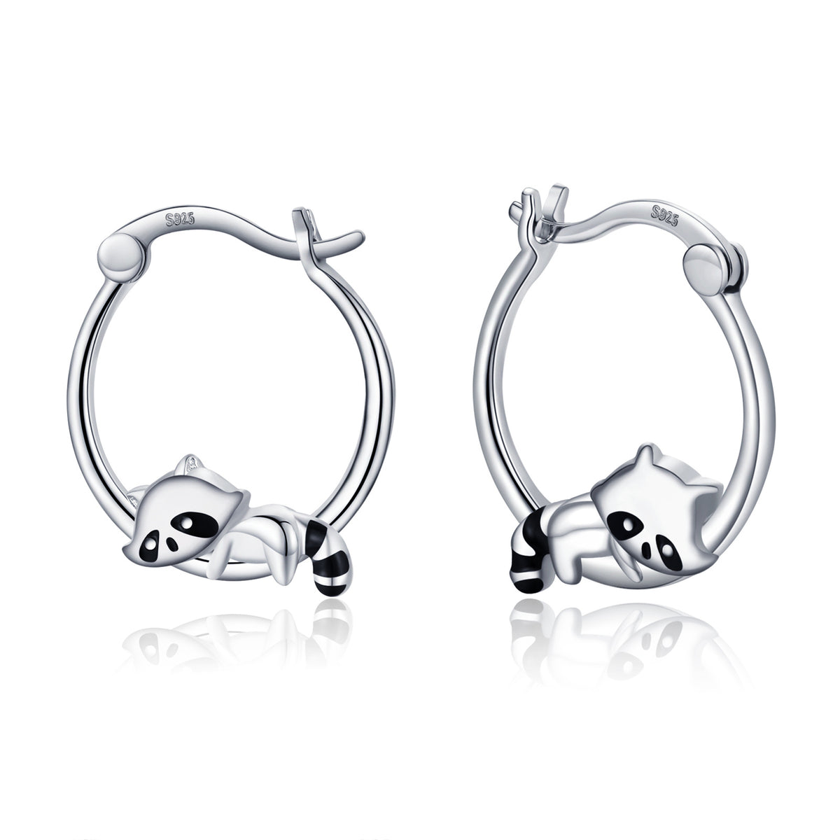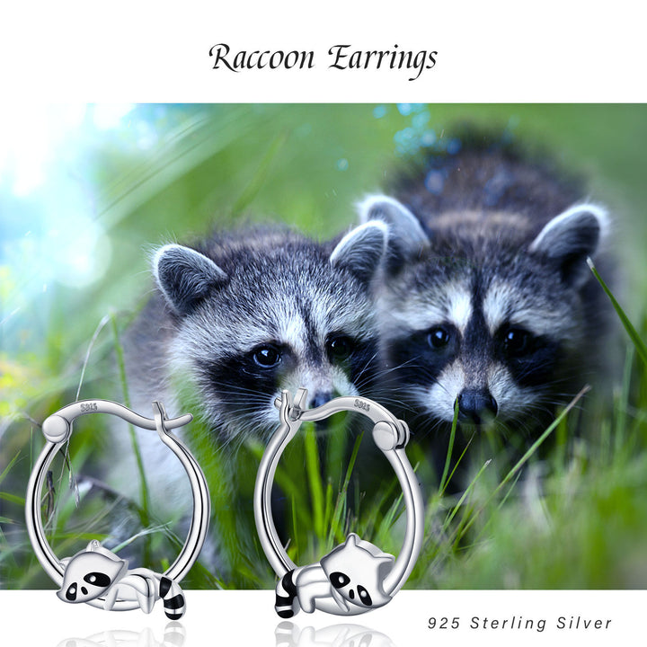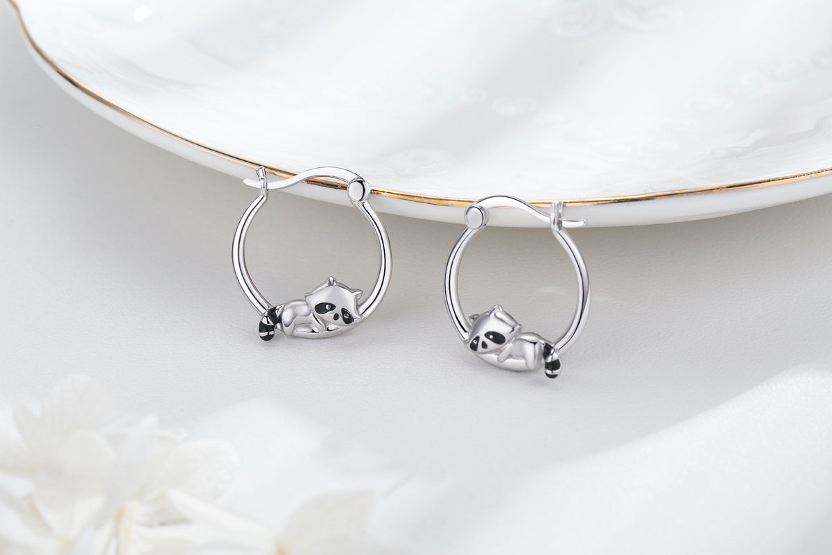 Sterling Silver Raccoon Hoop Earrings