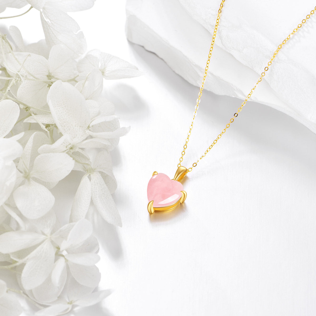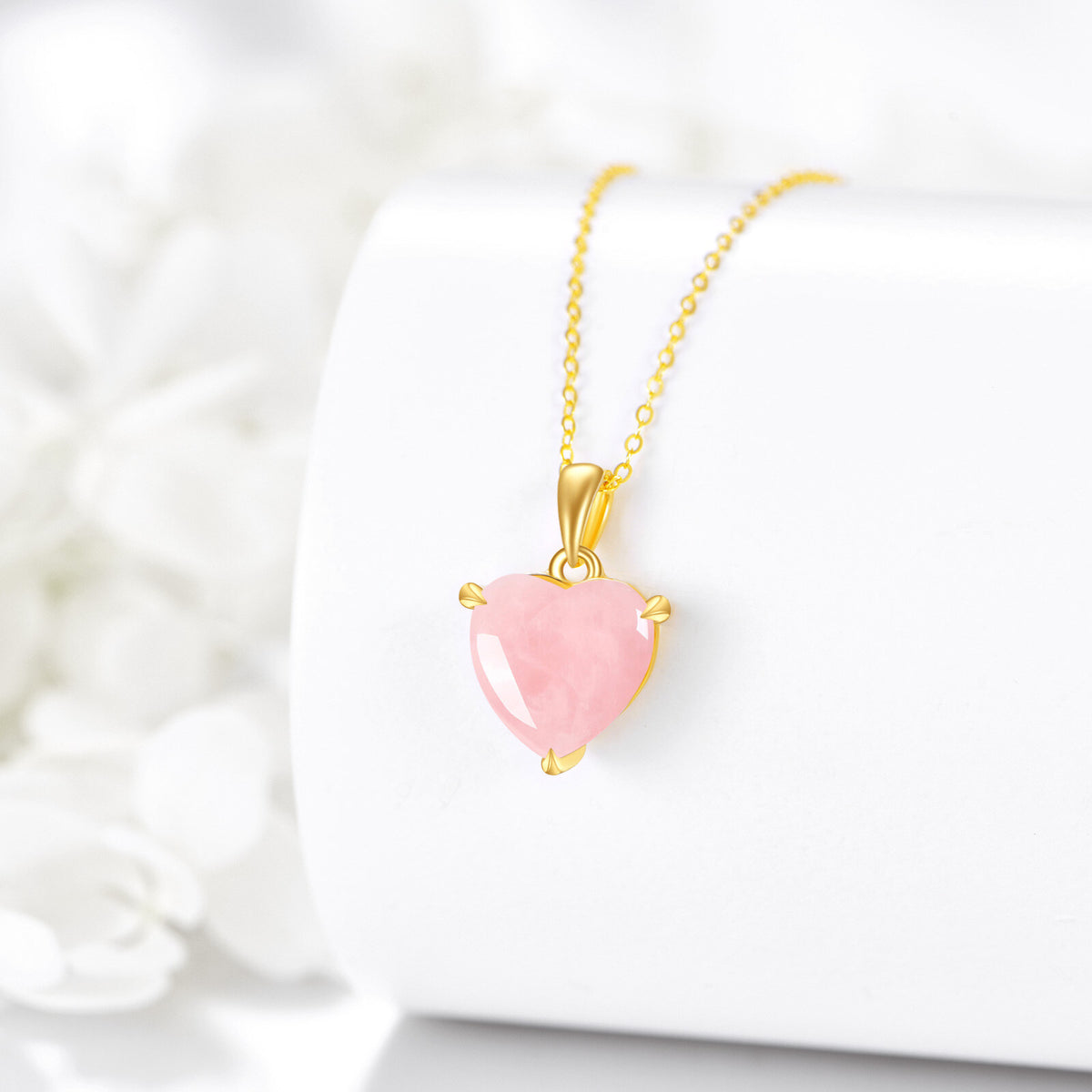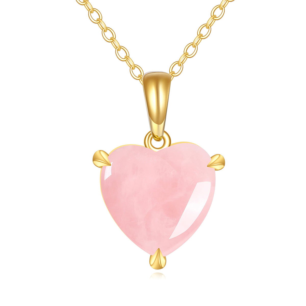 14K Gold Rose Quartz Heart Pendant Necklace
