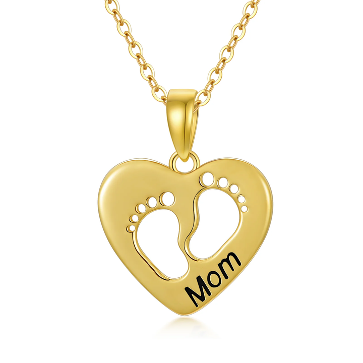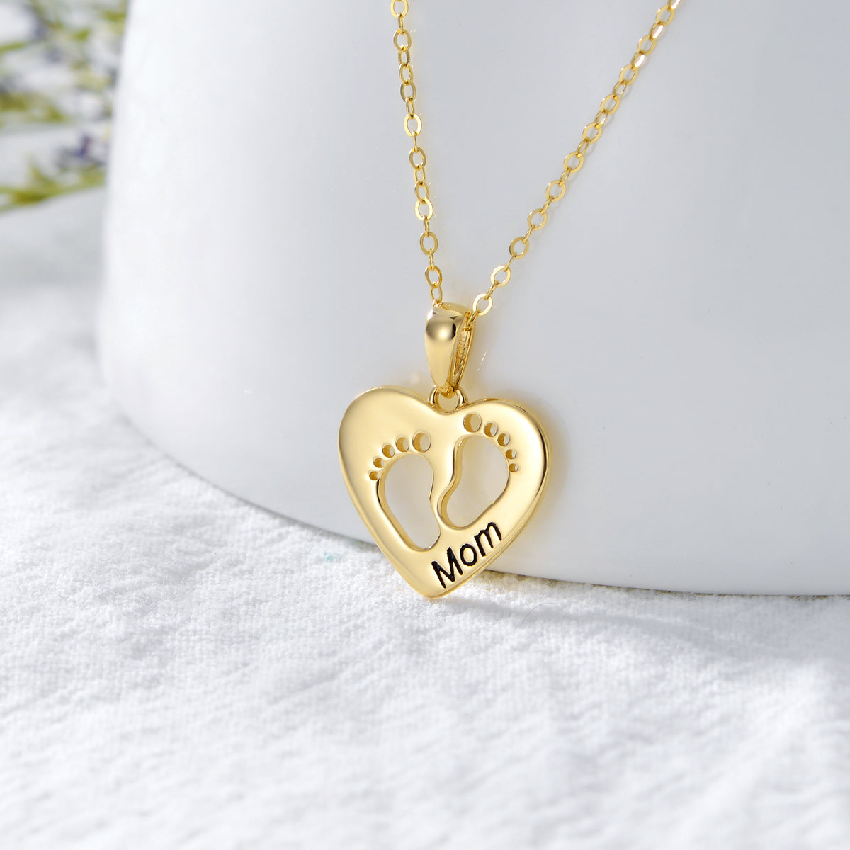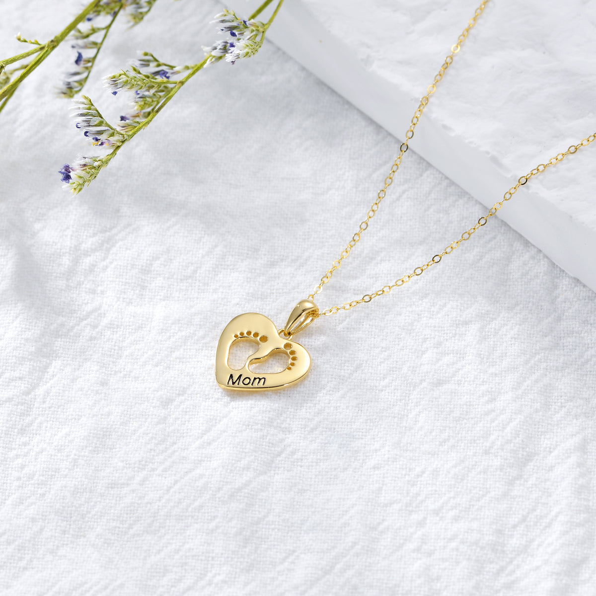 This Women's Pendant Necklace is crafted from High-Quality 14K Gold, Featuring an Intricately Designed Heart with Delicate Footprints.