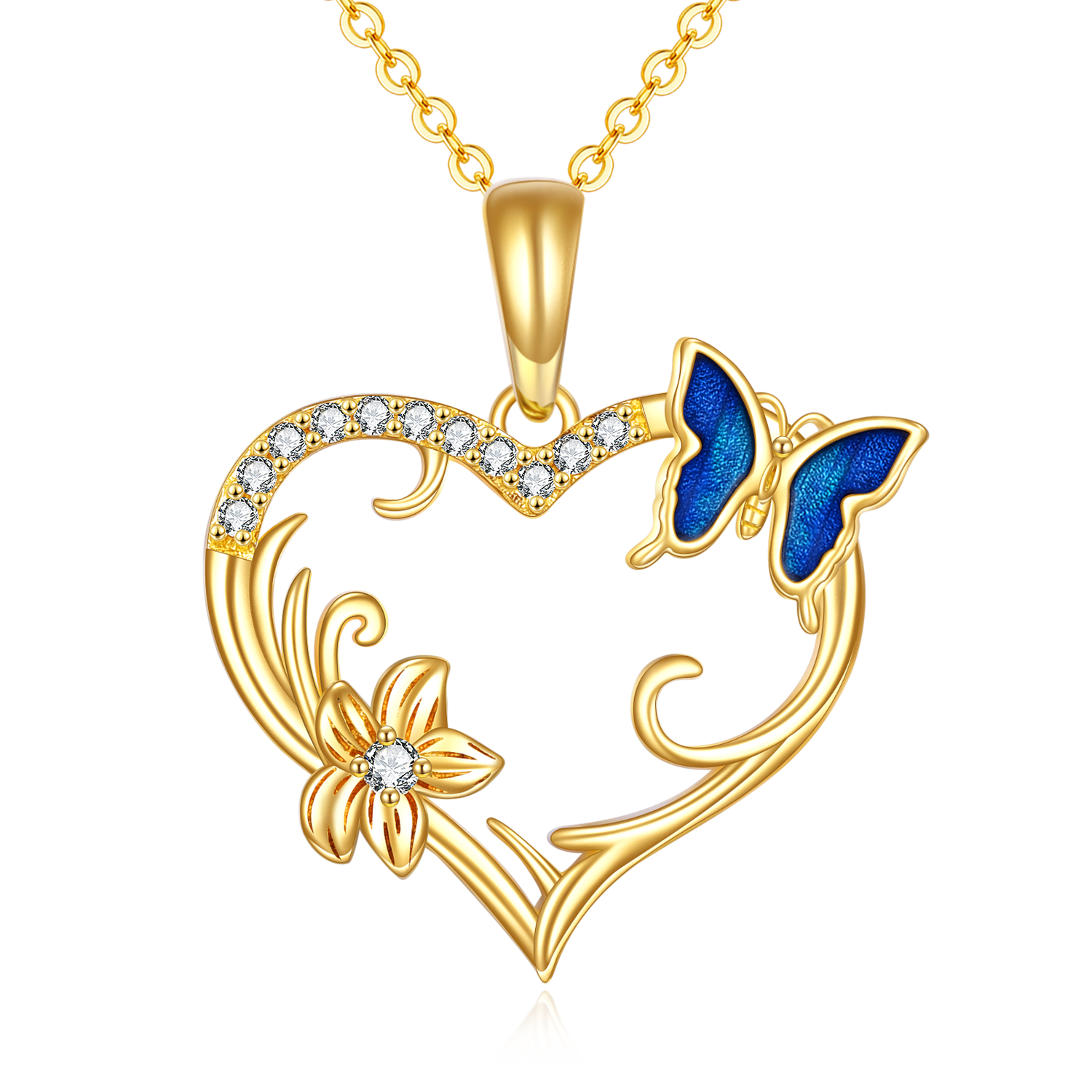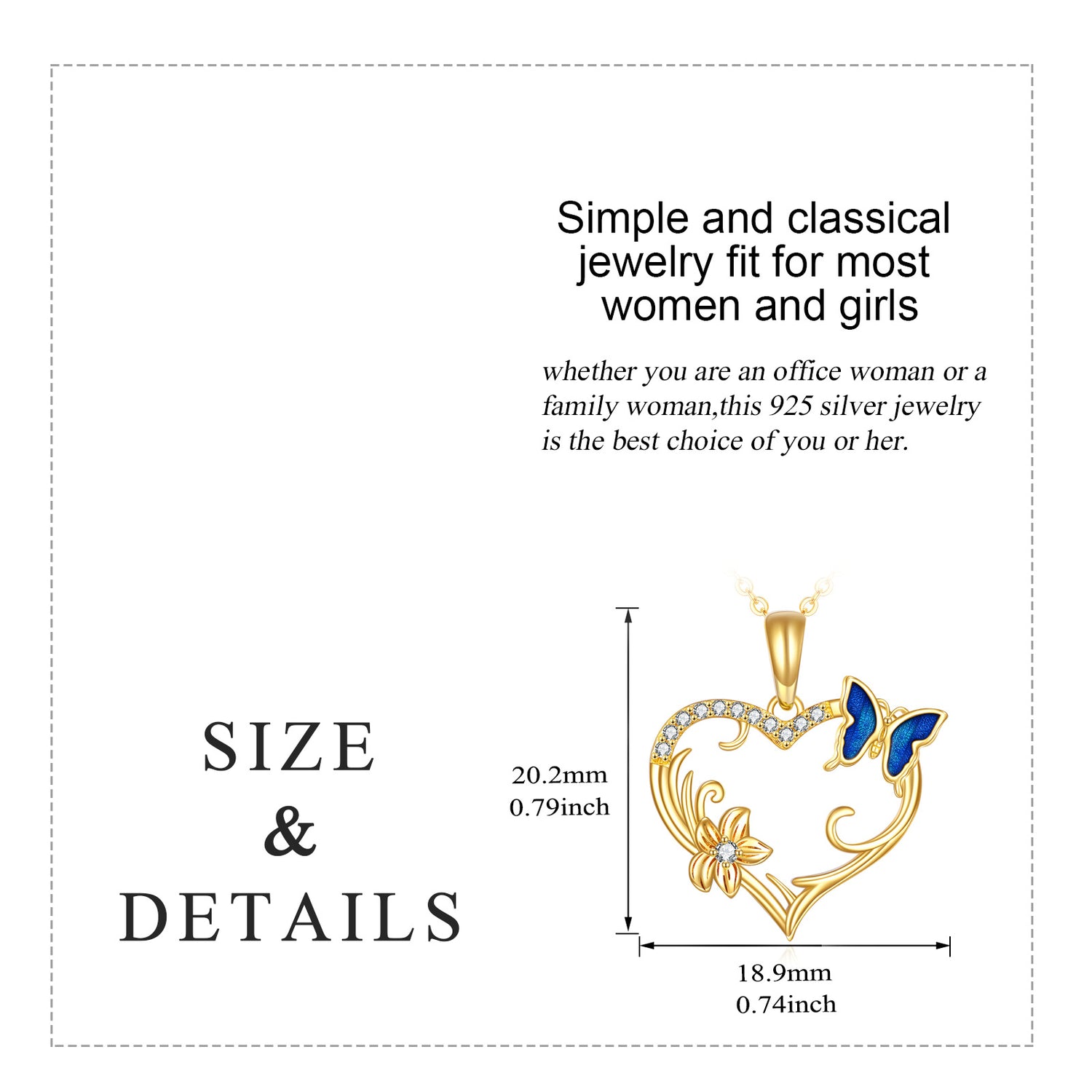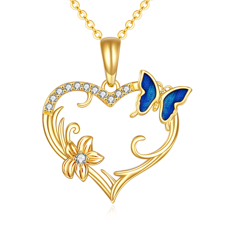 14K Gold Plated Heart Cubic Zirconia Butterfly Pendant Necklace For Women Best Friends