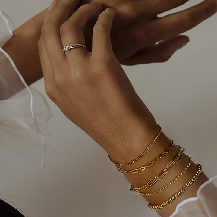 This 9K Gold Bead Snake Bone Chain Bracelet by YFN is a timeless piece designed for the modern woman who cherishes sophistication and understated luxury. Crafted from premium 9K Gold, the bracelet features meticulously designed Beads on a unique Snake Bone Chain, adding a contemporary edge. The polished gold surface ensures lasting brilliance and durability, making it perfect for both casual and formal occasions. Its minimalist yet striking design complements any outfit, reflecting refined taste and classic beauty.