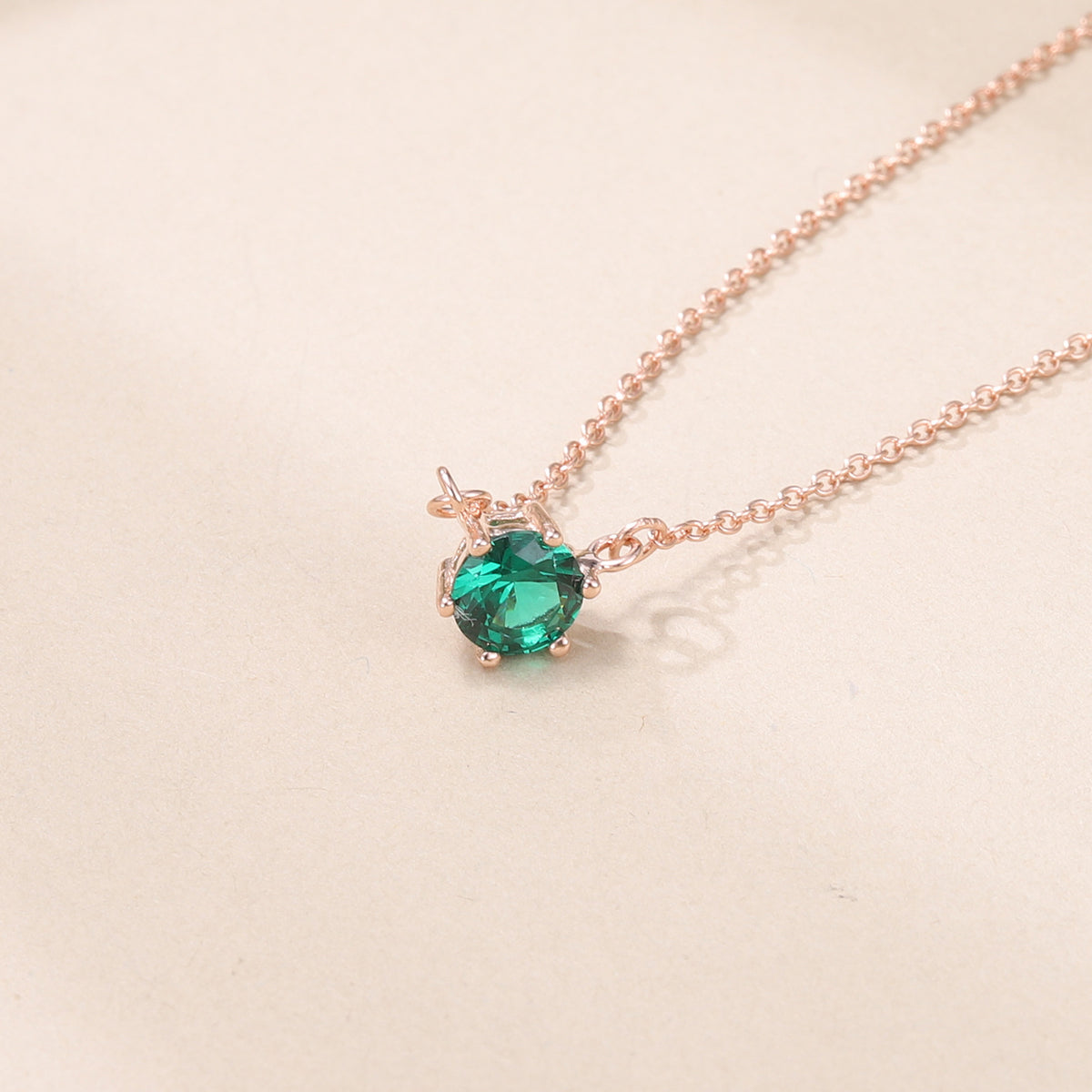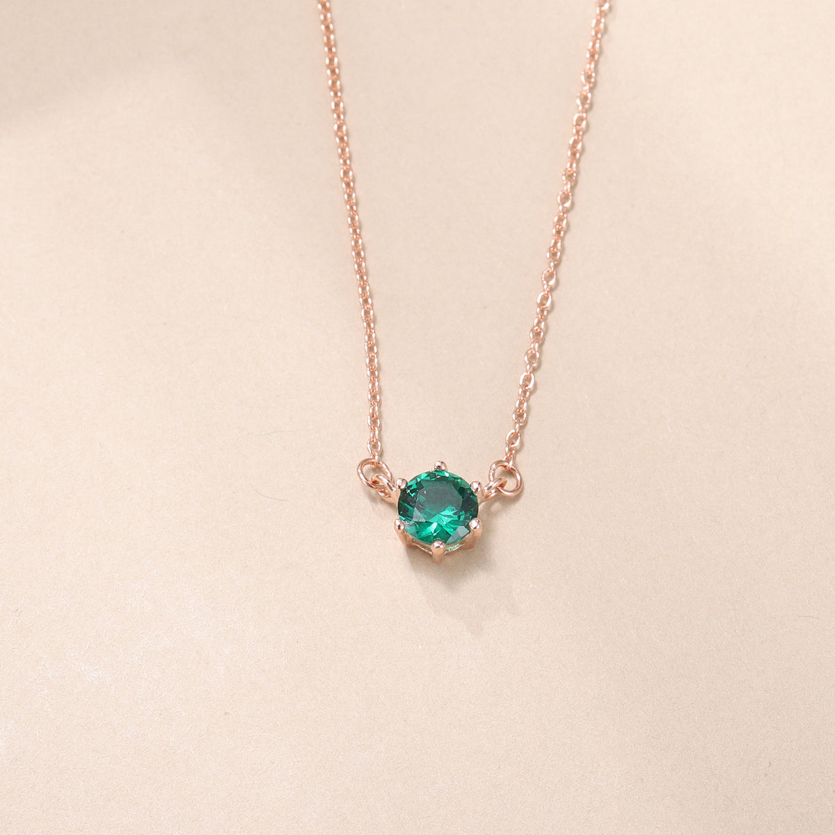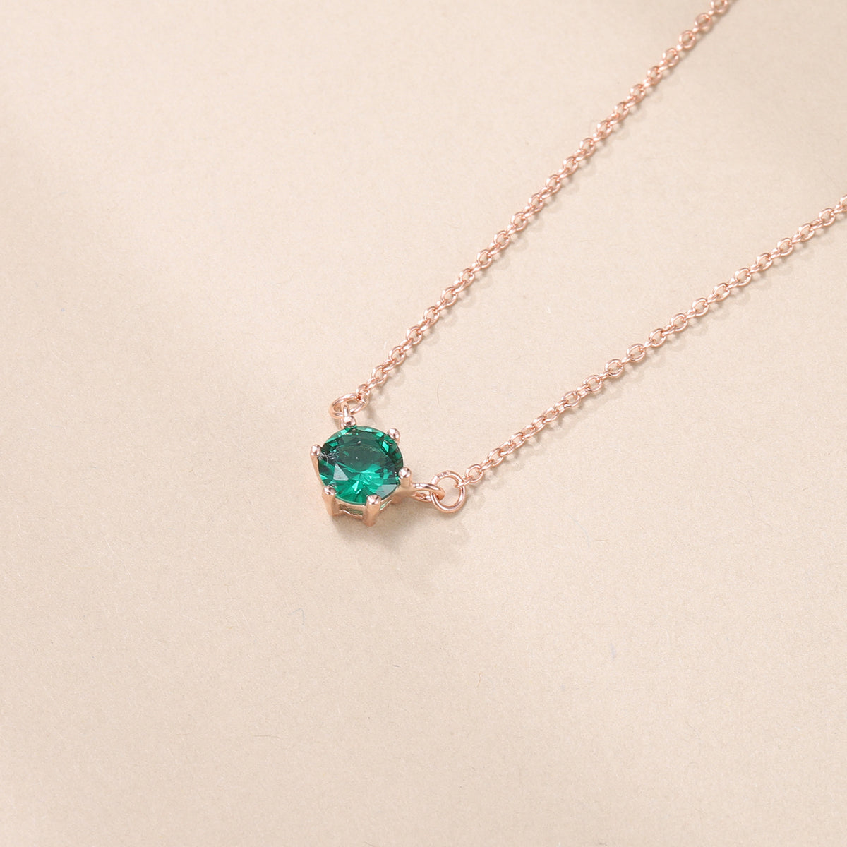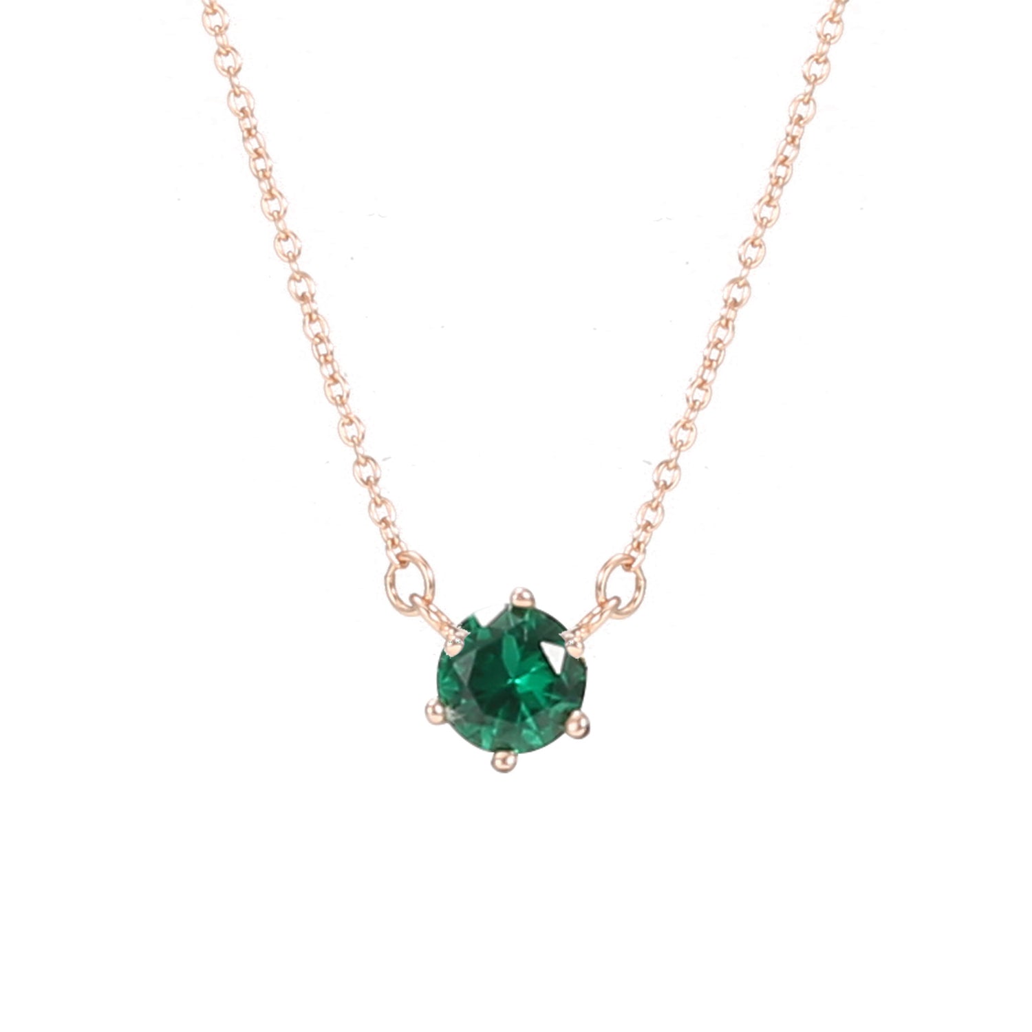 Crafted from Sterling Silver with Rose Gold Plating. This is a Round Pendant Necklace featuring a Green Round Gemstone (likely Cubic Zirconia, given material consistency) stone.