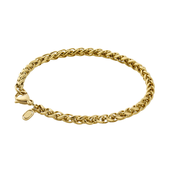 This no-stone Chain Bracelet is crafted from Sterling Silver with Yellow Gold Plating, Featuring a 5mm Wheat Chain Design.