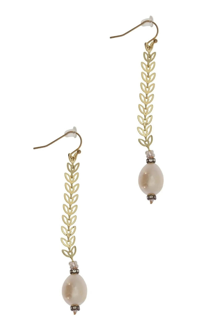 Pearl Drop Botanical Chain Earrings
