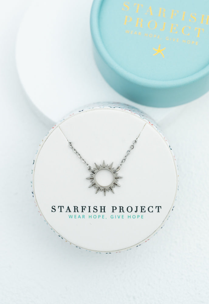 This Mallory Silver Necklace by Starfish Project is a simple yet impactful piece with a powerful purpose. The sleek stainless steel charm hangs on a matching adjustable chain, offering a minimalist and modern aesthetic. This necklace is a beautiful symbol of freedom and independence, as its purchase directly supports women and girls in need.