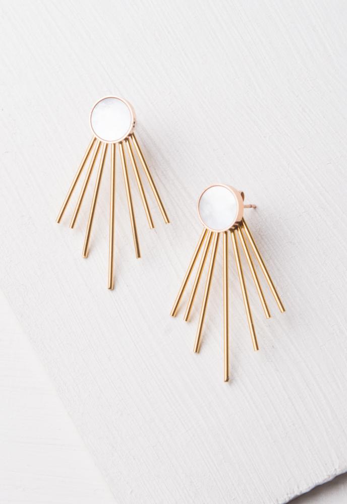 Caroline Mother Of Pearl Stud & Fringe Earrings