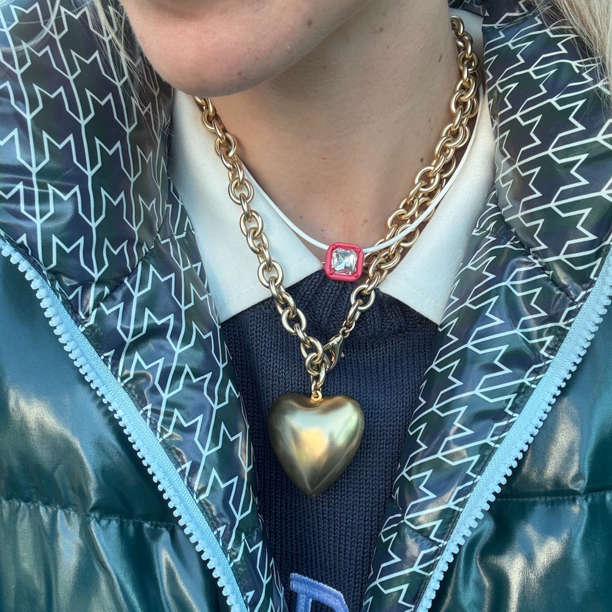 This Candy Collar Necklace - Passion Fruit by Smith & Co. Jewel Design is a bold and colorful accessory. The adjustable leather choker features a signature square acrylic jewel center in an enamel setting. It's a great piece to add to your necklace stack for a statement look and is a confident and vibrant accessory.