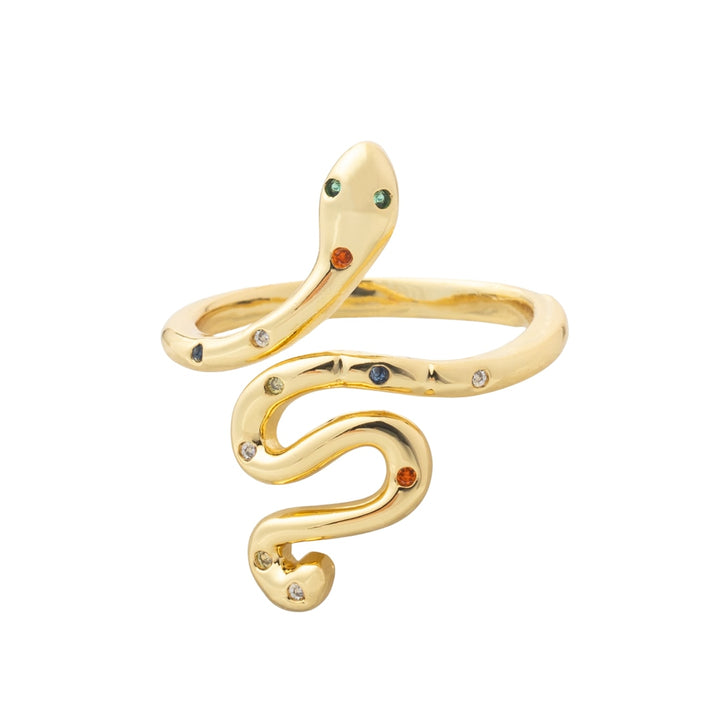 This Snake 'Little Dragon' Ring by Starfish Project is a symbolic celebration of strength, renewal, and transformation. Its sculptural snake form winds delicately around the finger, adorned with colorful zircon accents in vibrant hues. Inspired by the Lunar Year of the Snake—also known as the “Little Dragon”—this adjustable ring is a talisman of resilience and beauty.