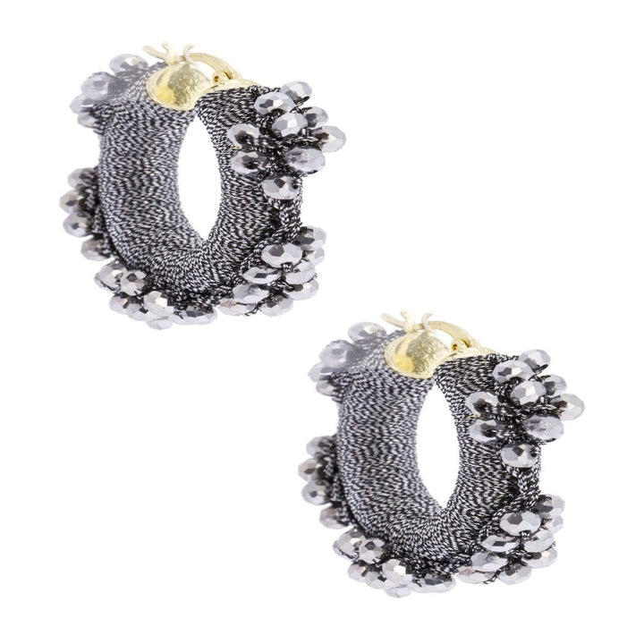 These Royal Redux Beaded Hoop Silver Earring by Saachi are an elevated take on the everyday hoop. Adorned with delicate thread and beaded details, they are sure to add a touch of glamour and sophistication to any outfit. The hinged hoop closure makes them easy to wear, and their unique design makes them a standout accessory.