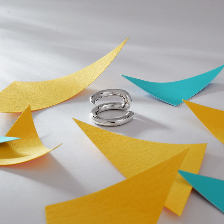 This Pointed Double Band Ear Cuff - Silver by Meulien is a unique and edgy accessory. The sterling silver cuff features a twist on a traditional double band design, with one band being shorter and detailed with a pointed end. The generous volume of the bands adds a poised look without the need for a piercing. It's a versatile accessory for adding a touch of modern style and edgy sophistication to your ear stack.