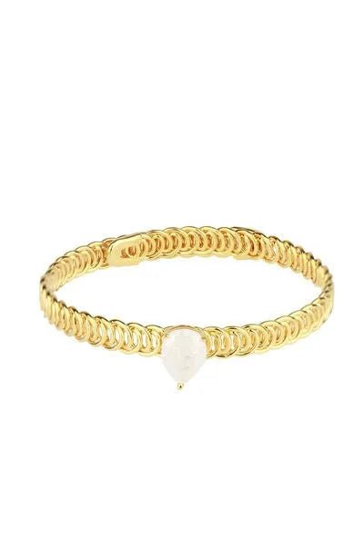 Crafted from brass, this bangle features a teardrop stone. It is adjustable with an approximate diameter of 2 inches.