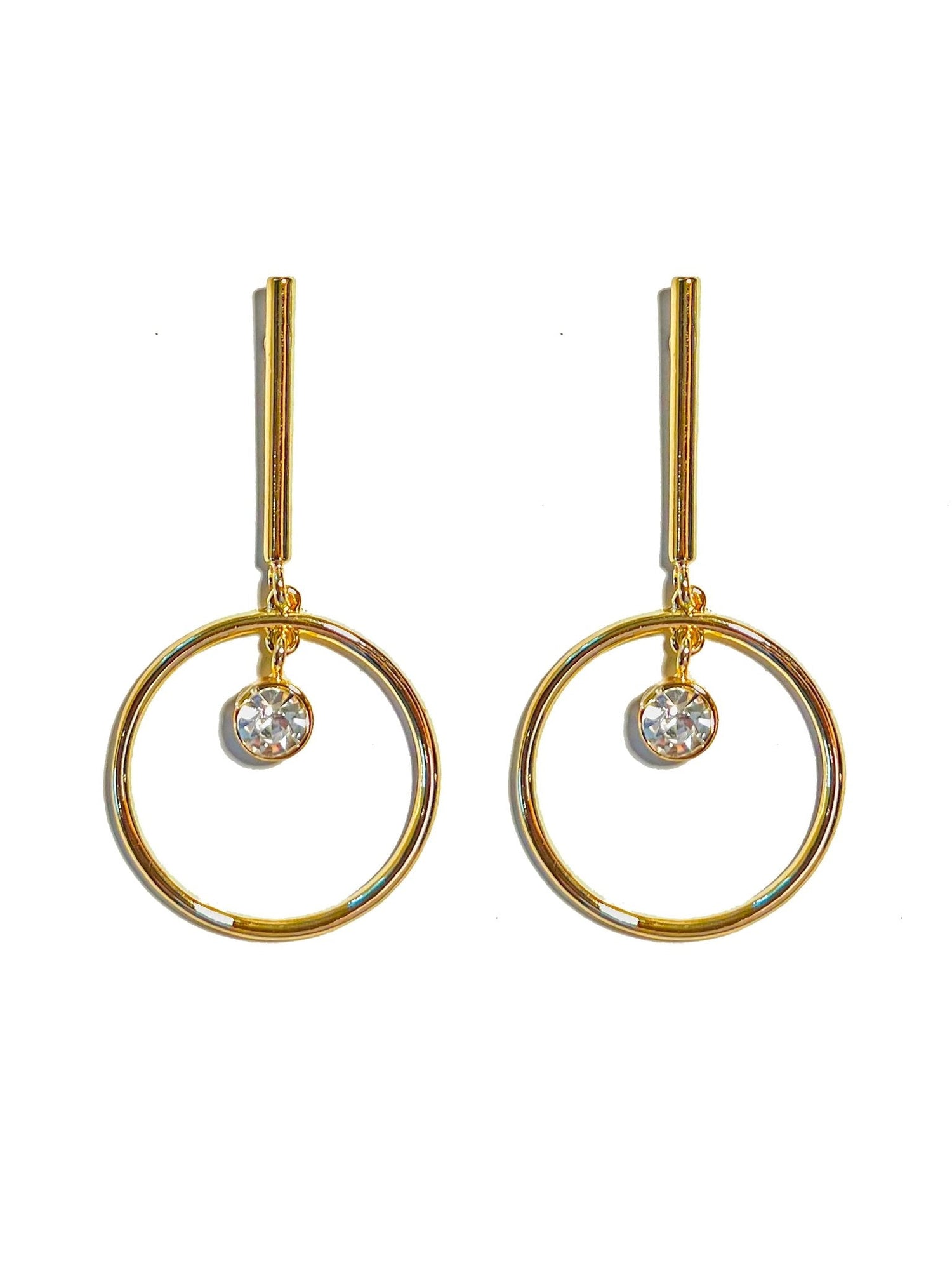 These drop earrings are crafted from gold-plated zinc alloy with glass rhinestones.