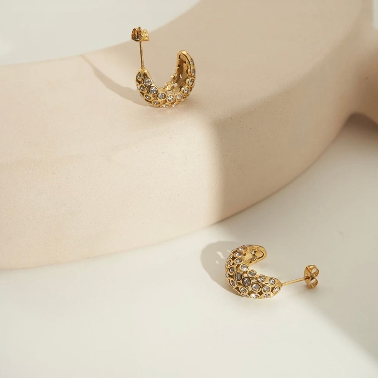 These earrings are expertly crafted from a high-quality, water-resistant 18K gold-plating, built for lasting elegance and daily wear.