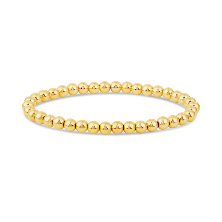 This bracelet is crafted from 14k yellow gold-filled 5mm beaded balls and features a stretch design for easy wear.