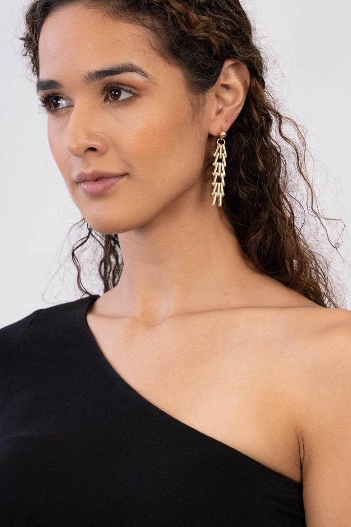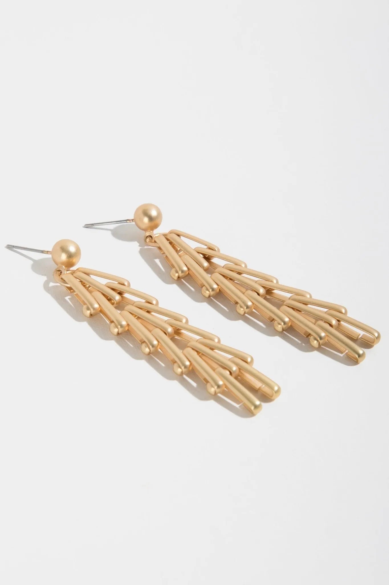 These drop earrings are crafted from matte gold-plated alloy chain. They are 2.5 inches in height and have a post-back closure.
