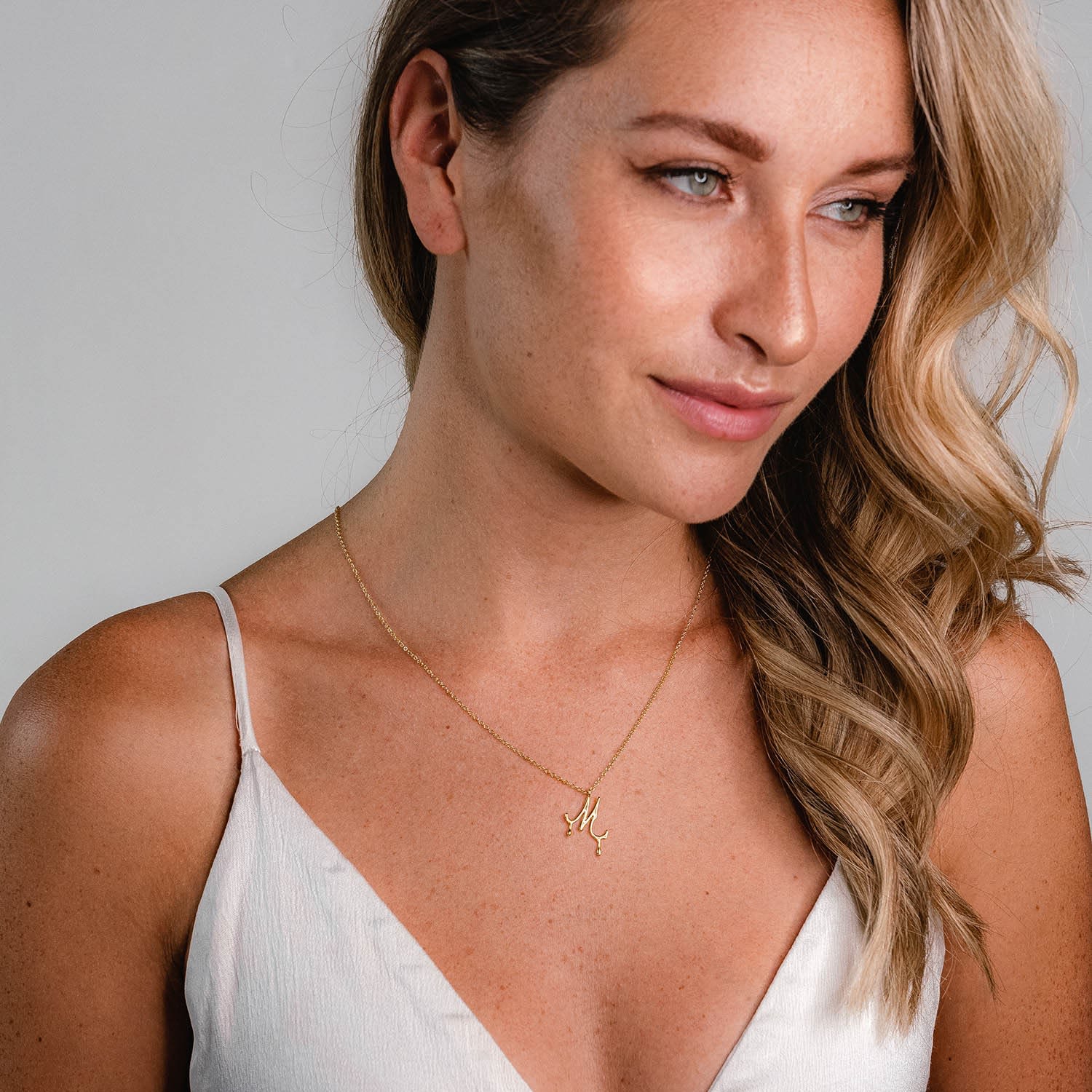 Handcrafted in sterling silver with thick 24k yellow gold vermeil plating. Adjustable chain with 7.6 cm (3 in) extender. Hypoallergenic and tarnish-resistant. Customizable with initial of choice.