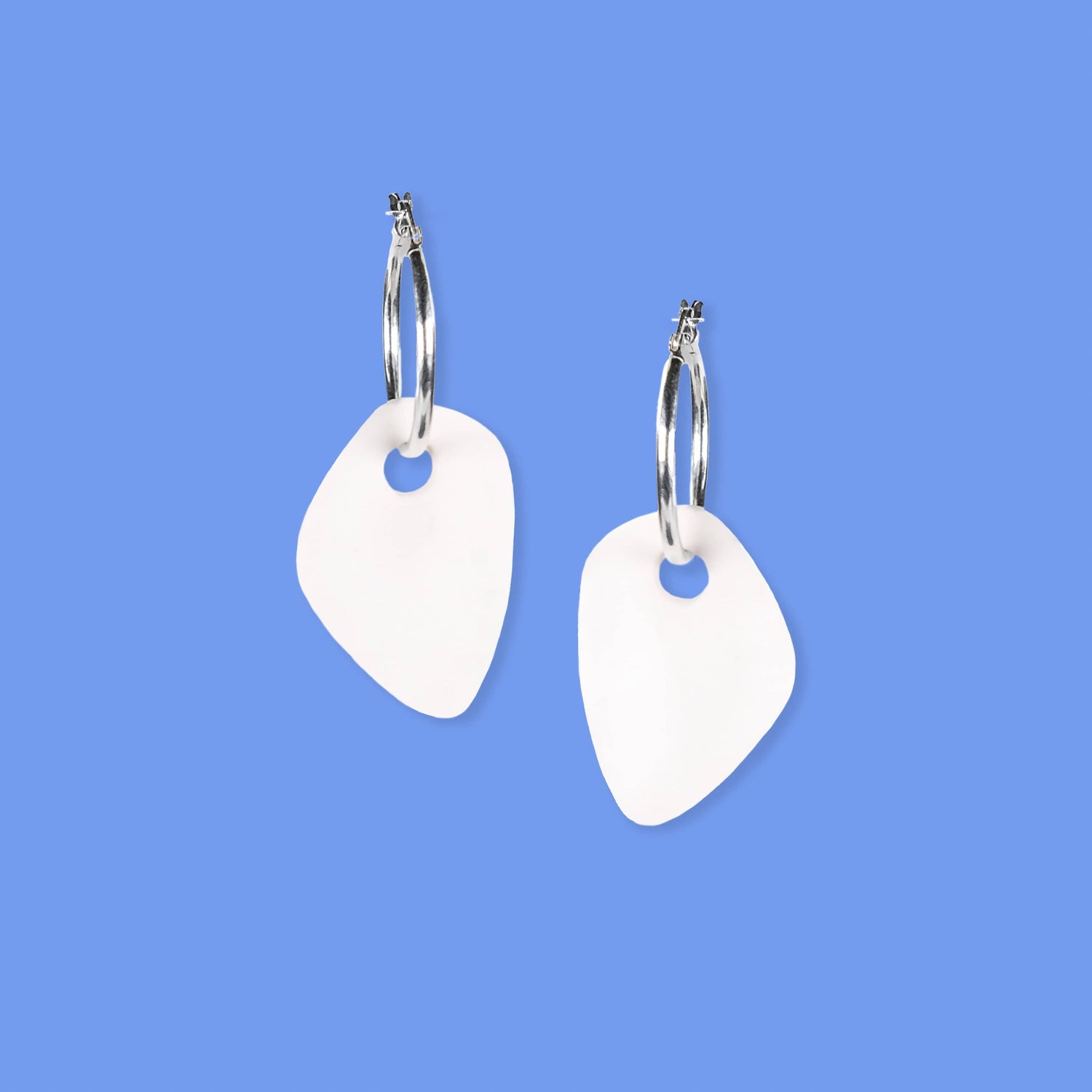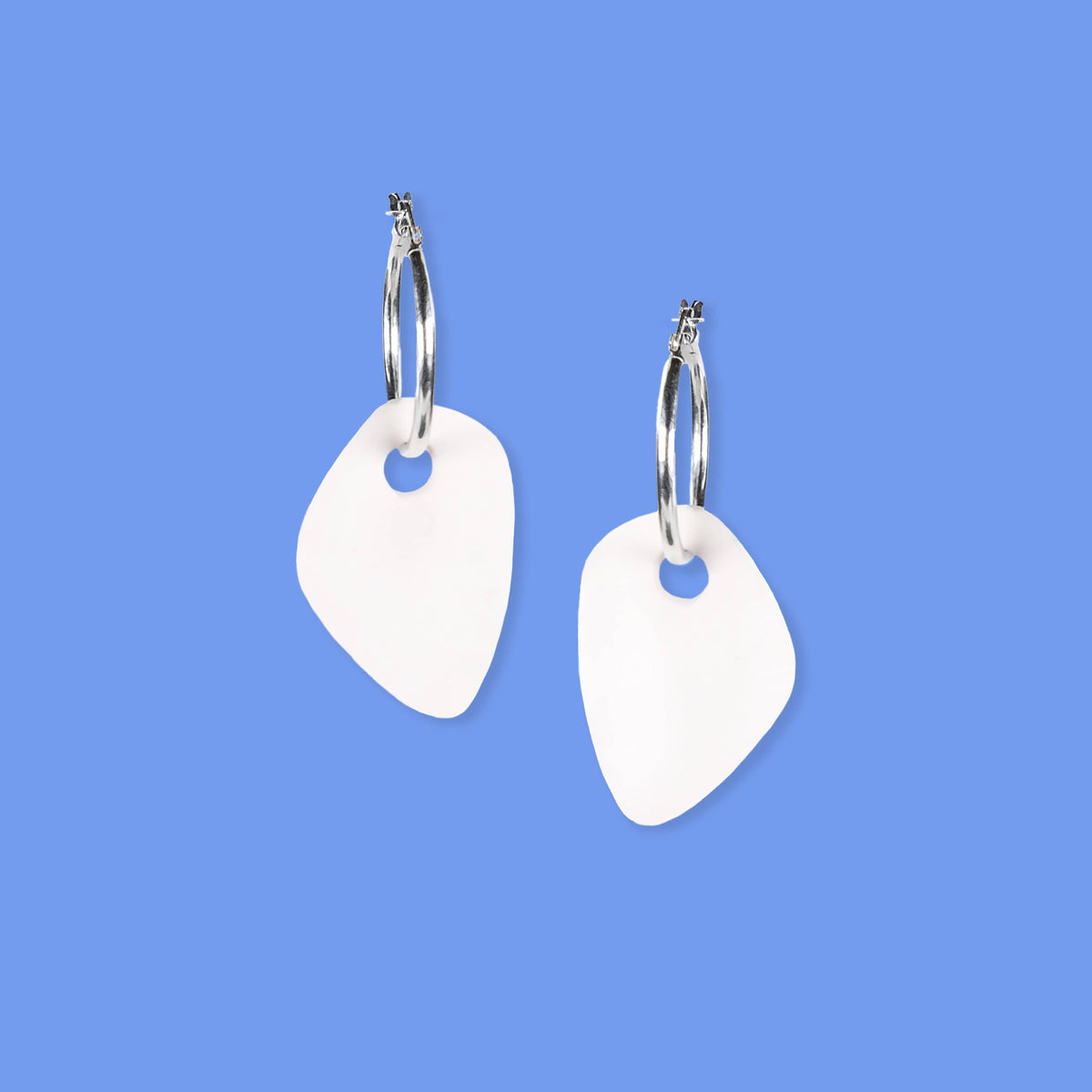 These Modern Art Drop Charm Hoop Earrings In White by Chavelli are a playful nod to the world of abstract art, drawing inspiration from famous sculptures and mobiles. Their sleek, funky shapes exude a cool, artsy vibe, yet their clean lines keep them versatile and modern. The detachable charms allow for dual styling, so you can wear the simple, elegant hoops for a minimalist look or add the sculptural drops for a statement that shows off your unique, creative personality. This two-in-one design makes them a versatile and charming addition to your jewelry collection.