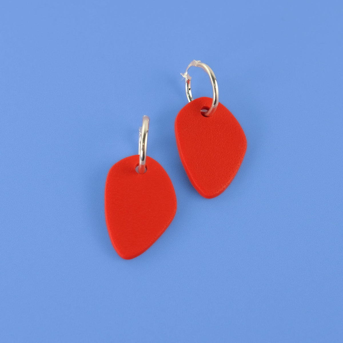 These Modern Art Drop Charm Hoop Earrings In Red by Chavelli are a vibrant and artistic take on everyday accessories, inspired by the bold forms of modern sculptures and abstract paintings. Their distinct, unconventional shapes offer a simple yet sophisticated aesthetic, giving you a chance to express your artistic side. The charms are removable, providing you with two distinct looks in one pair of earrings—a sleek, classic hoop or a statement piece with a uniquely artsy personality. This design is perfect for those who appreciate contemporary style and effortless versatility.