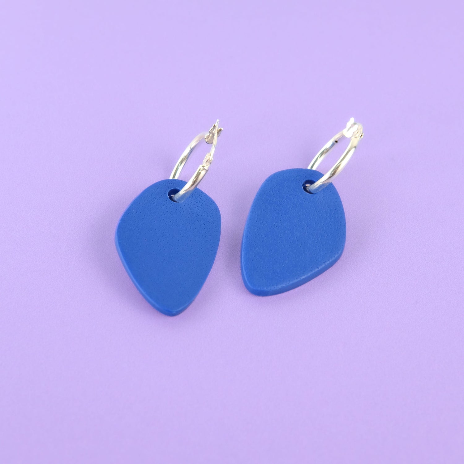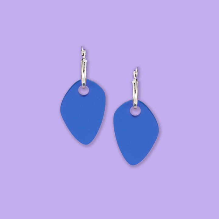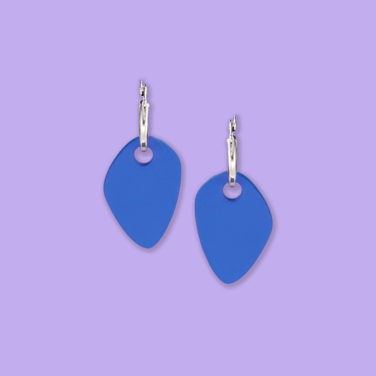These Modern Art Drop Charm Hoop Earrings In Blue by Chavelli are an artistic and whimsical take on everyday accessories, inspired by the bold forms of modern sculptures and abstract paintings. Their distinct, unconventional shapes offer a simple yet sophisticated aesthetic, giving you a chance to express your artistic side. The charms are removable, providing you with two distinct looks in one pair of earrings—a sleek, classic hoop or a statement piece with a uniquely artsy personality. This design is perfect for those who appreciate contemporary style and effortless versatility.
