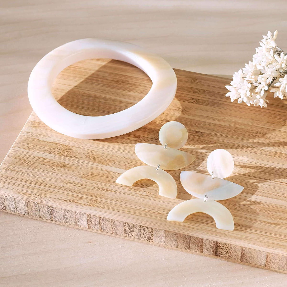 These Pearl White Long Dangle Earrings by Likhâ are a timeless and sophisticated accessory. Hand-carved and polished by master artisans, these modern geometric earrings feature mother of pearl, which adds the perfect accent to any outfit. The unique, hand-crafted nature of each pair ensures subtle variations, making them truly one-of-a-kind pieces that celebrate uniqueness and add a graceful, elegant touch.