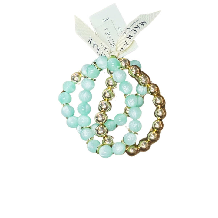 This Spring Bracelet Set by Macrae & Co, in green, is the perfect addition to your jewelry collection. The set of three bracelets, crafted with acrylic beads, can be worn together or separately for a versatile and sophisticated look. These timeless pieces elevate any outfit with a fun pop of color.