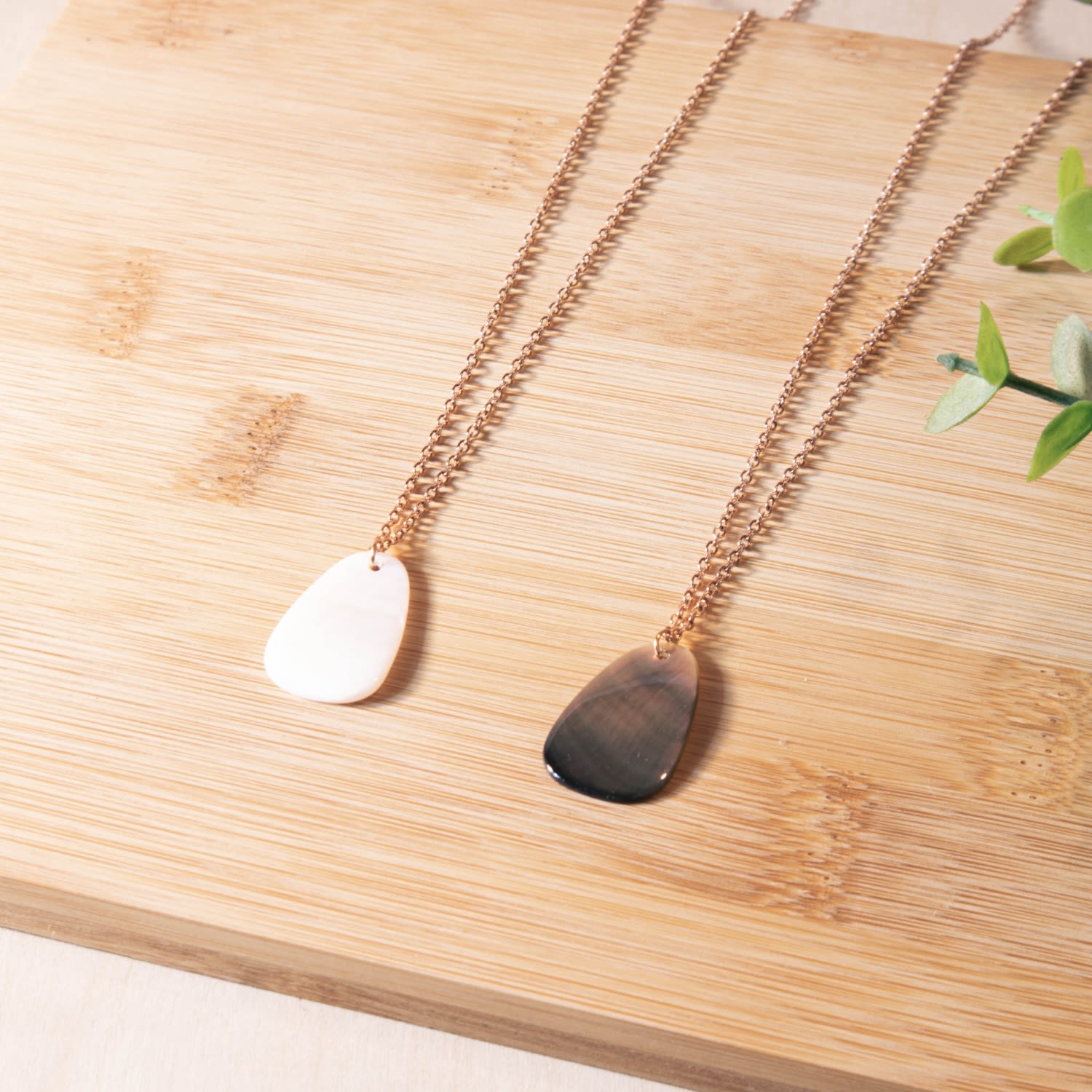 This White Mother-Of-Pearl Trapezoid Necklace by Likhâ is a stunning piece that celebrates the allure of nature and artisanal craftsmanship. Handcrafted in the Philippines, it features a lustrous trapezoid pendant made from a carefully selected mother-of-pearl, known for its natural beauty and iridescence. The pendant is suspended from a chic rose gold chain, creating a harmonious blend of elegance and resilience. This necklace is a timeless accessory that adds a touch of sophistication to any look, whether for a special occasion or everyday wear.